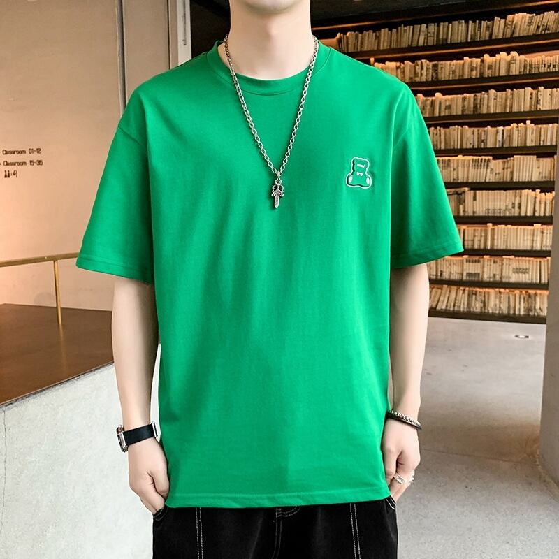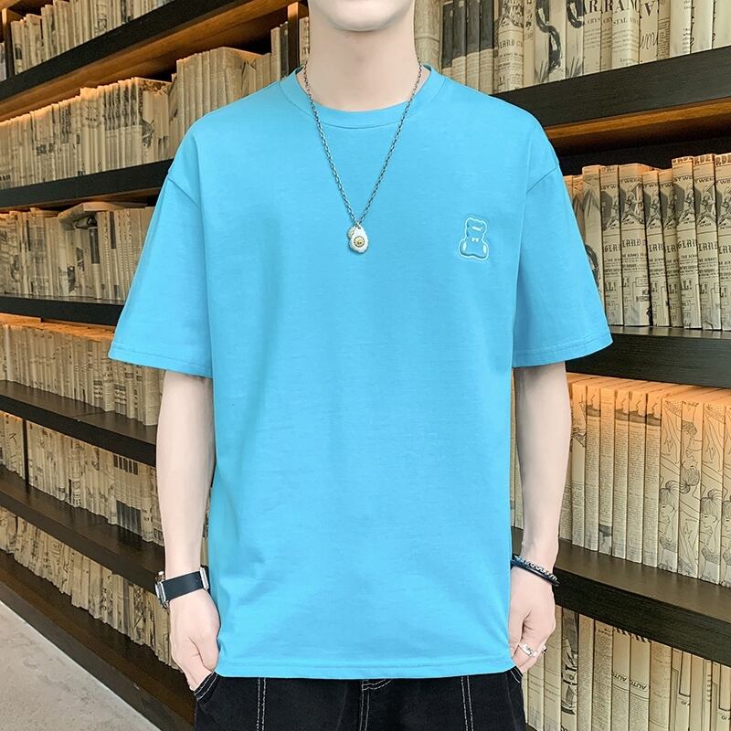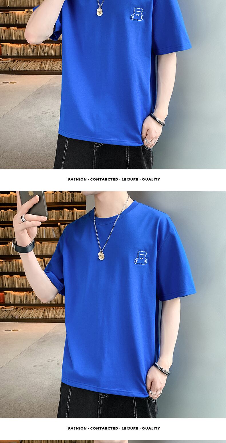 Men's Klein blue short-sleeved t-shirt summer thin ice silk breathable men's clothing ins trend men's bright color clothes ブルー サマー 夏物 シルク Tシャツ doushi63365315842