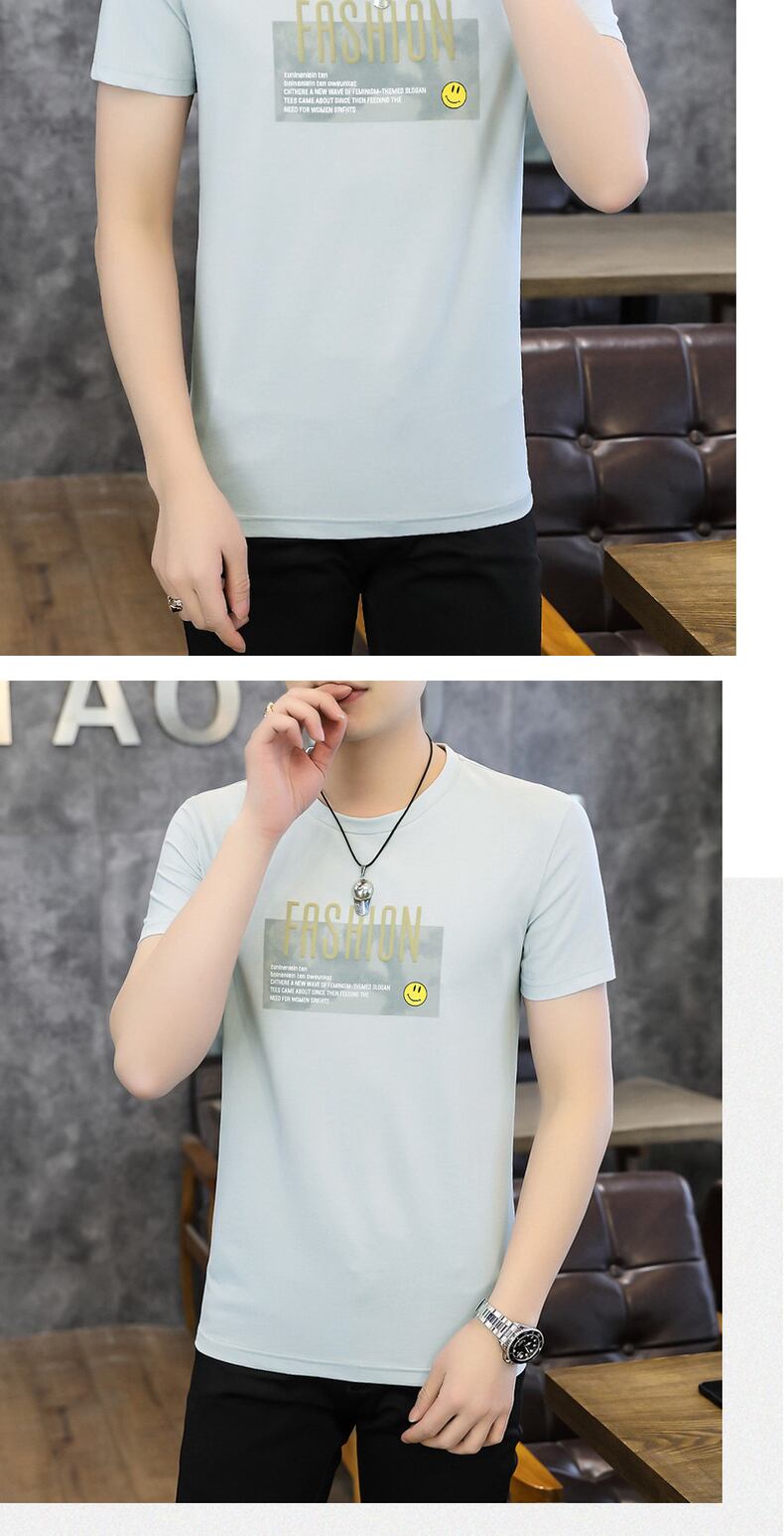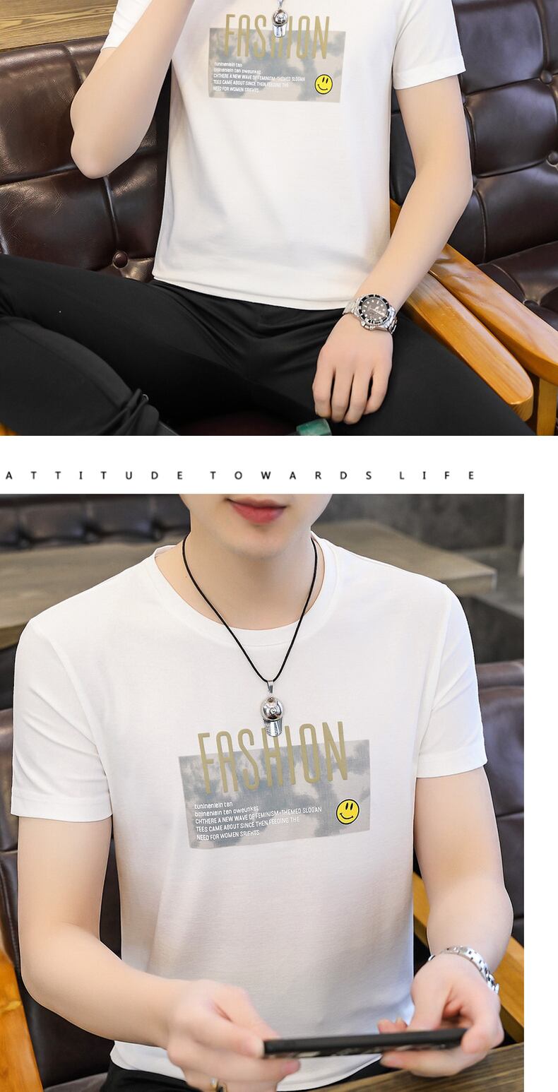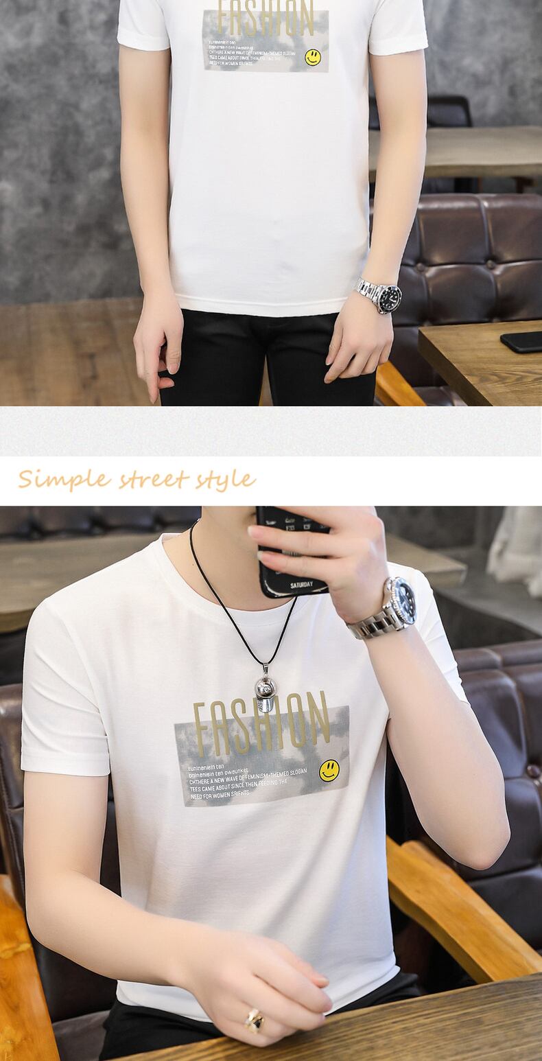 Summer version of the slim t-shirt short-sleeved men's printed youth student half-sleeved casual trend round neck T-shirt プリント カジュアル サマー 夏物 Oネック スリム Tシャツ doushi43938119982