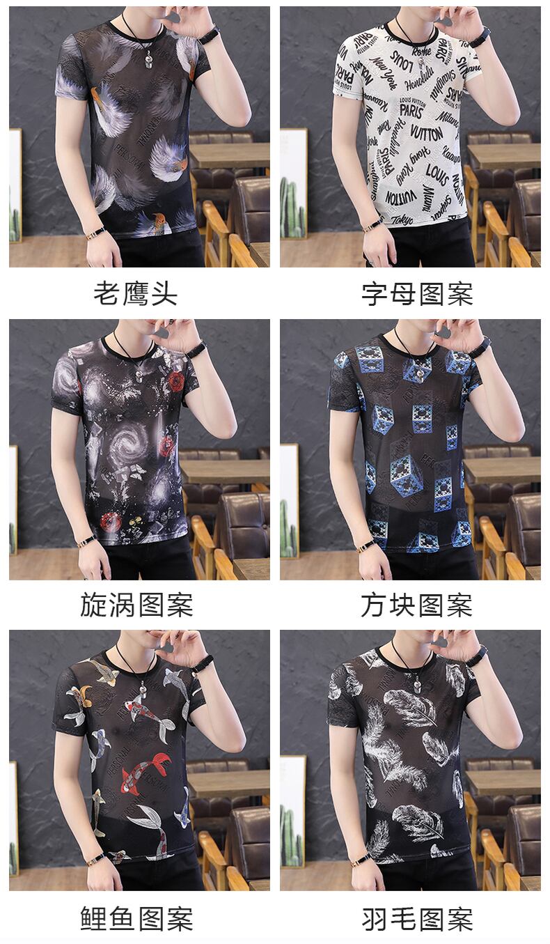 Ice silk round neck t-shirt men's short-sleeved 2022 summer new mesh hollow t-shirt thin breathable quick-drying half-sleeve top サマー 夏物 メッシュ Oネック シルク Tシャツ doushi16677997124