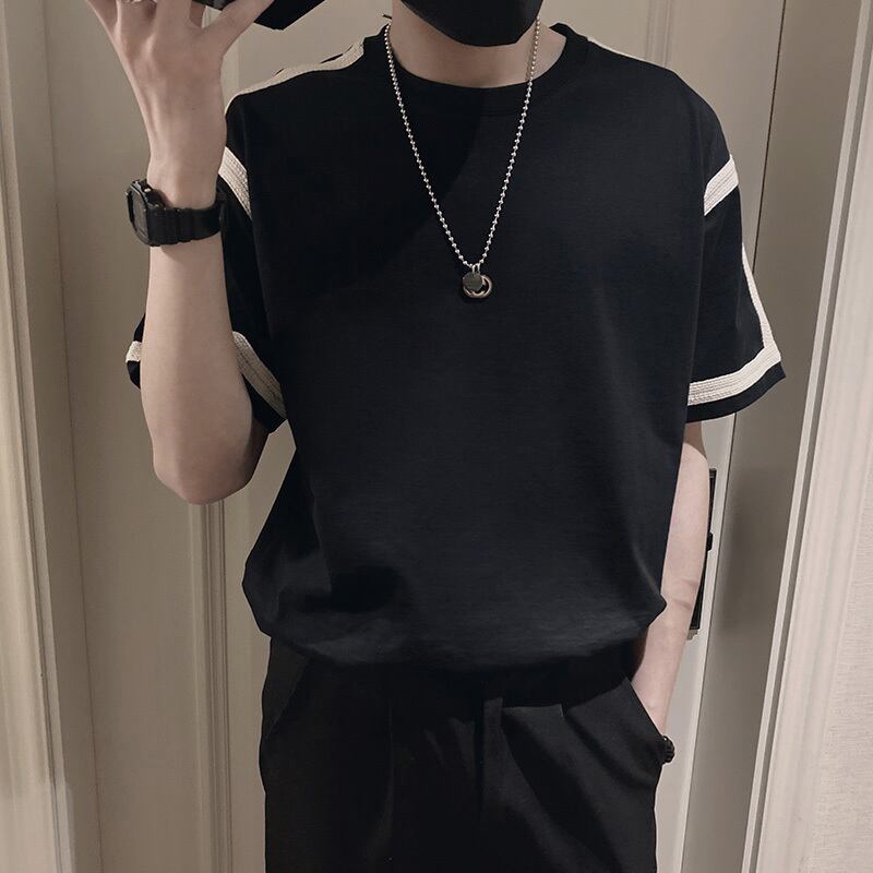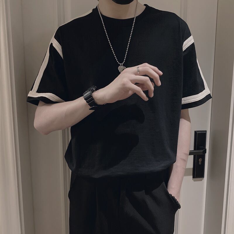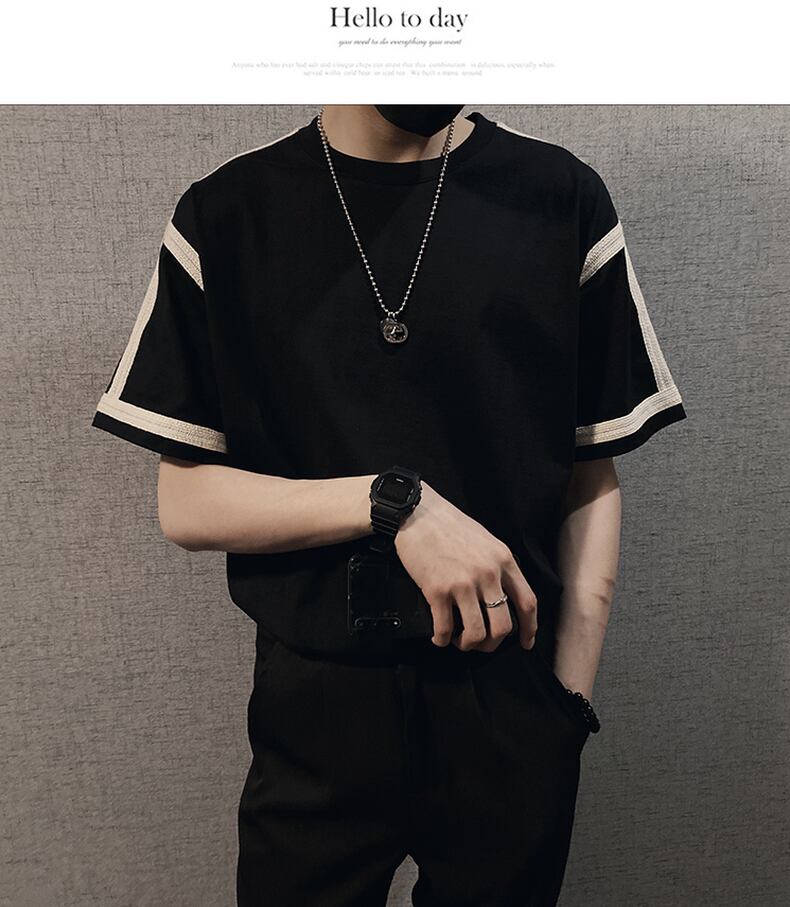 2022 summer loose black short-sleeved t-shirt men's version of the trend simple all-match couple tide brand ins half-sleeve t-shirt ブラック サマー 夏物 Tシャツ doushi12358965980