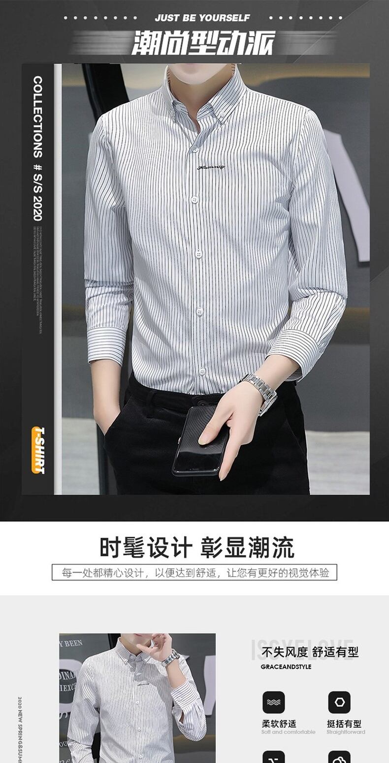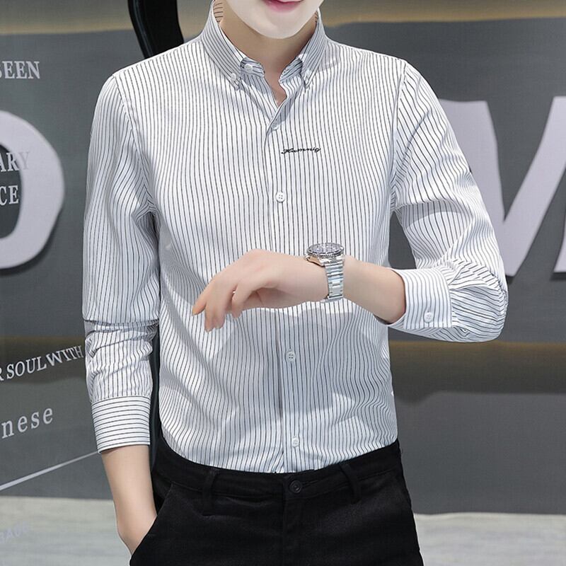 Spring and summer men's long-sleeved shirts trend version business casual shirts men's striped all-match bottoming shirts tops ロング カジュアル シャツ スプリング 春物 サマー 夏物 ストライプ doushi79722350865