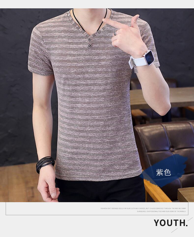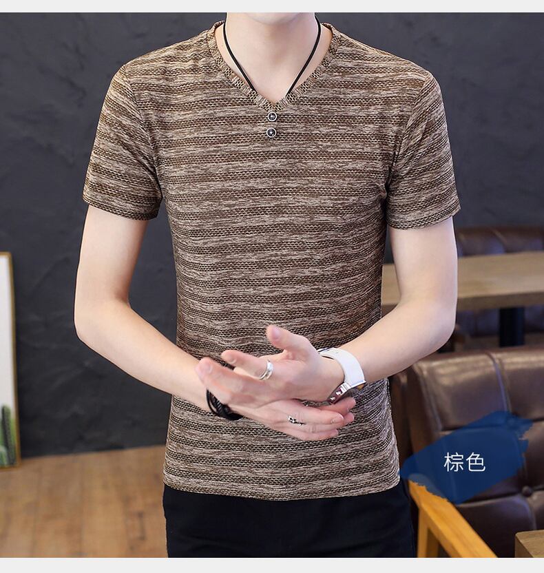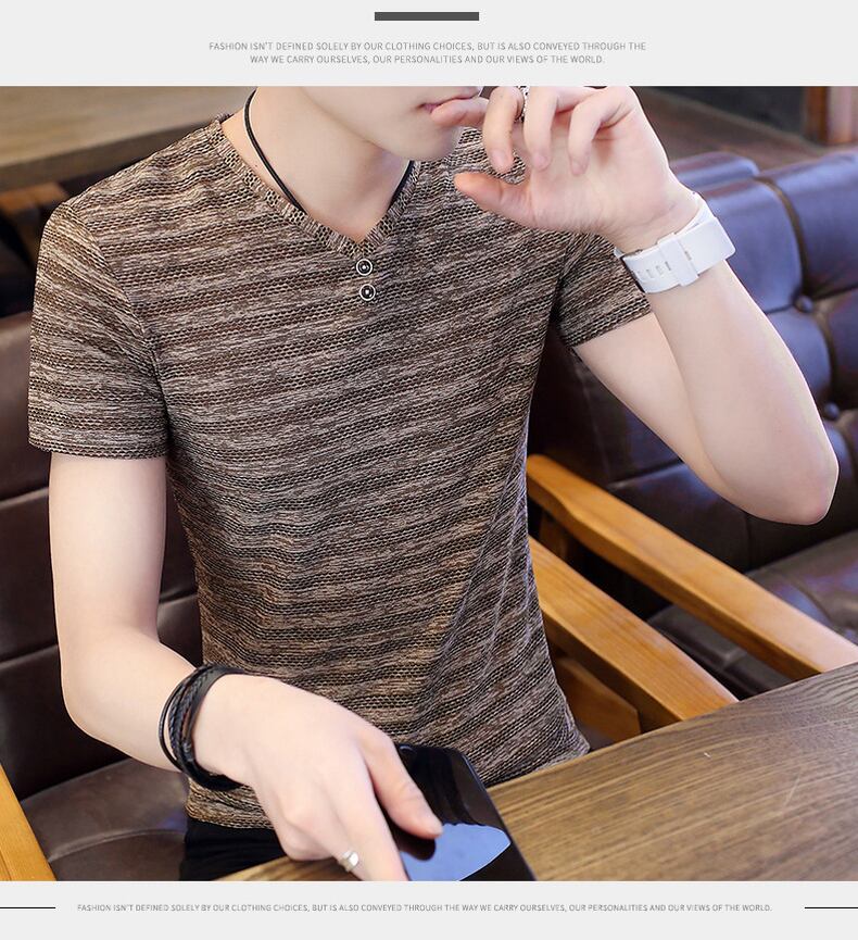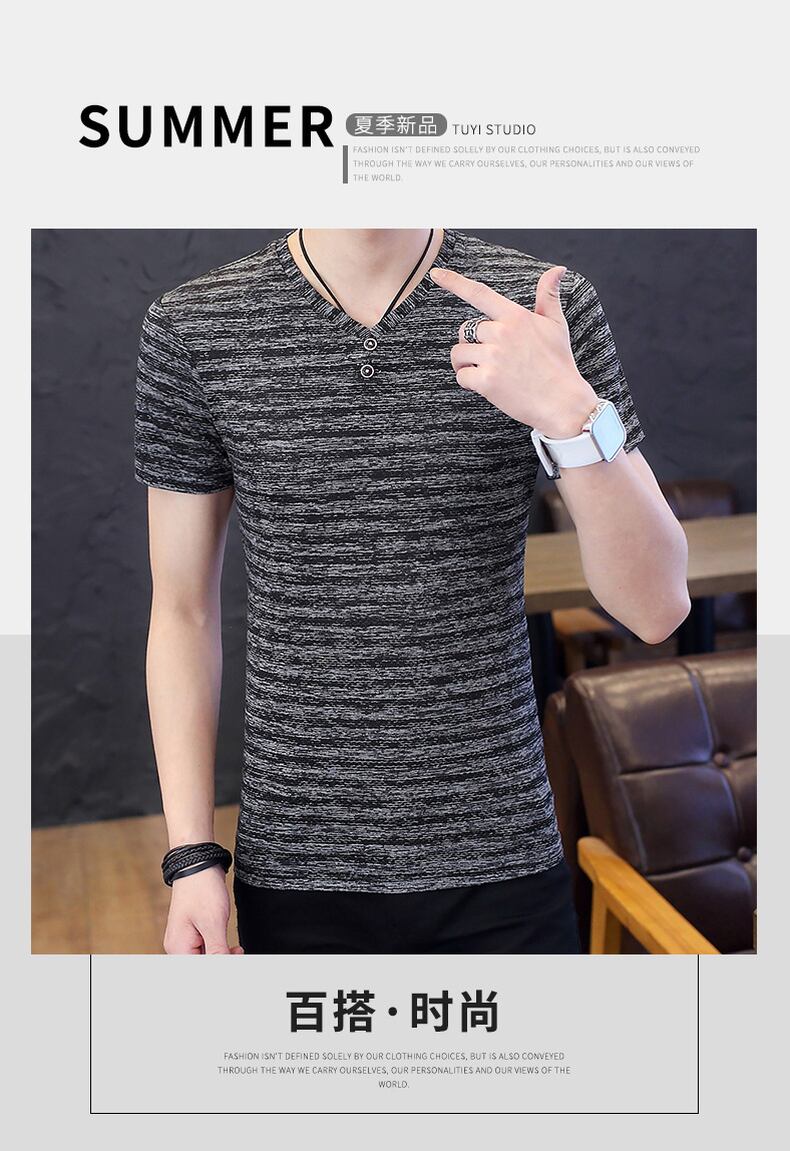 Summer ice silk t-shirt men's short-sleeved mulberry silk thin slim fit 2022 new trend high-end v-neck half-sleeve t-shirt サマー 夏物 Vネック スリム シルク Tシャツ doushi48152807362
