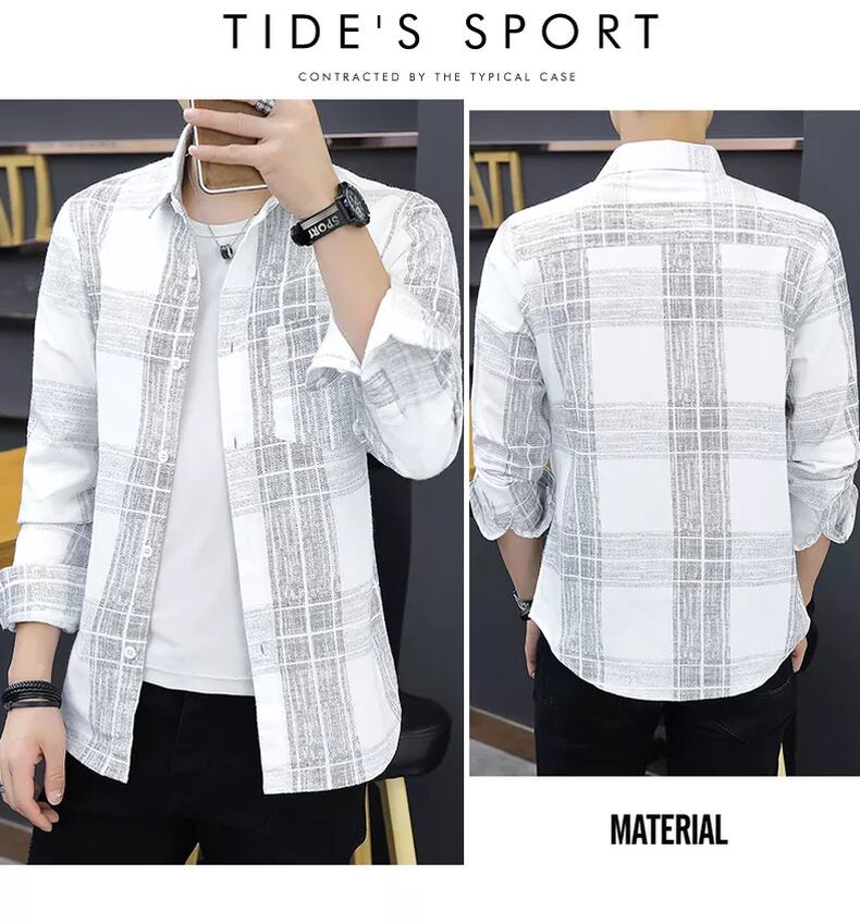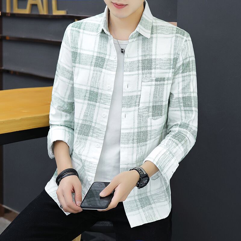 Summer new plaid shirt men's long-sleeved version spring and autumn casual men's shirt jacket pure cotton Hong Kong style inch shirt men ロング コットン カジュアル スプリング 春物 サマー 夏物 オータム 秋物 ピュア doushi91992609278
