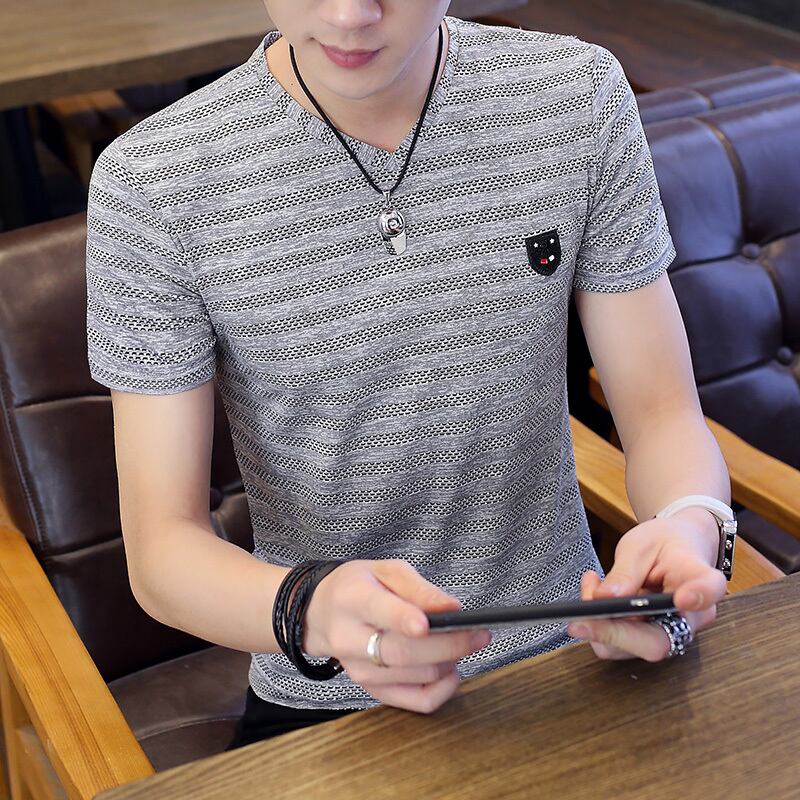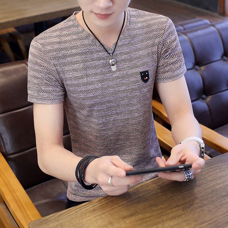 Men's short-sleeved t-shirt 2022 summer new v-neck casual half-sleeved ice silk slim fit clothes summer trend men's clothing カジュアル サマー 夏物 Vネック スリム シルク Tシャツ doushi35015851546