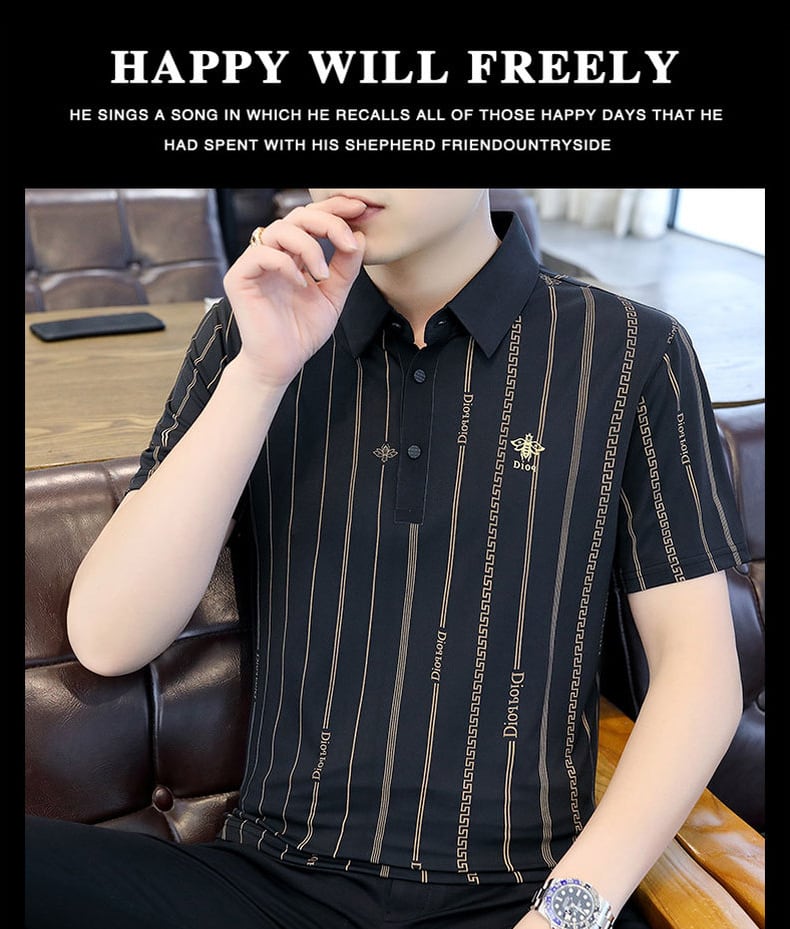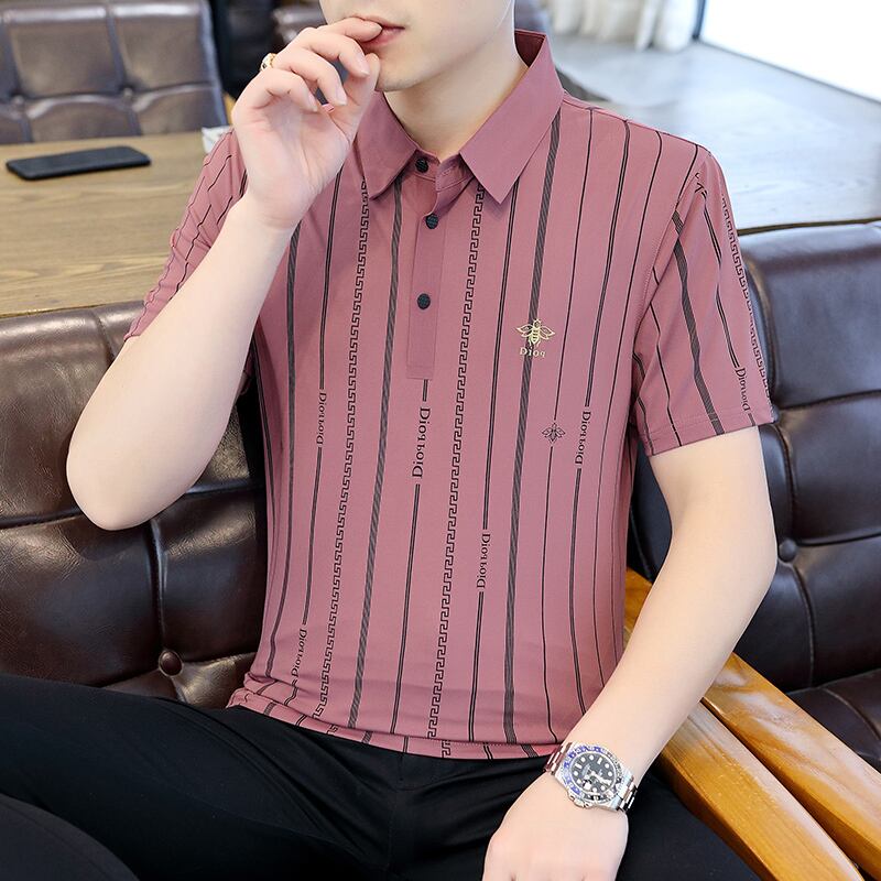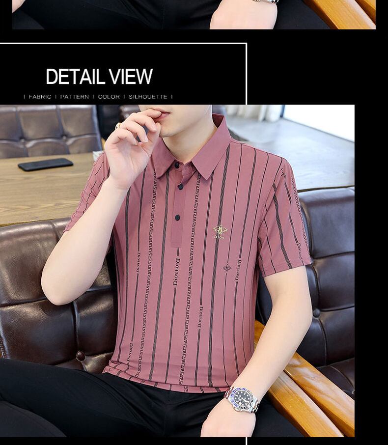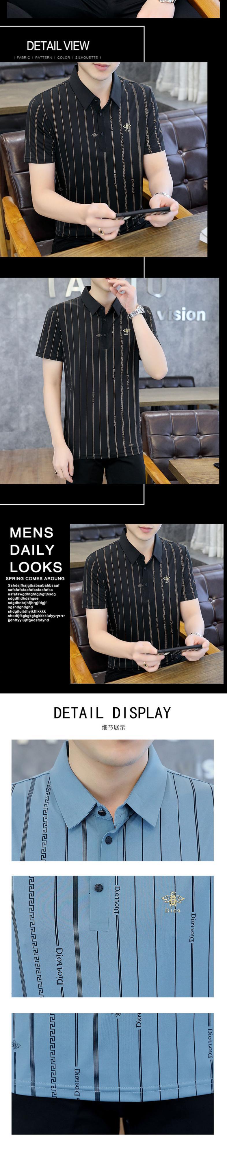 2022 new summer half-sleeved version trend striped short-sleeved Polo shirt men's thin ice silk men's t-shirt clothes サマー 夏物 ストライプ シルク Tシャツ doushi44931648450