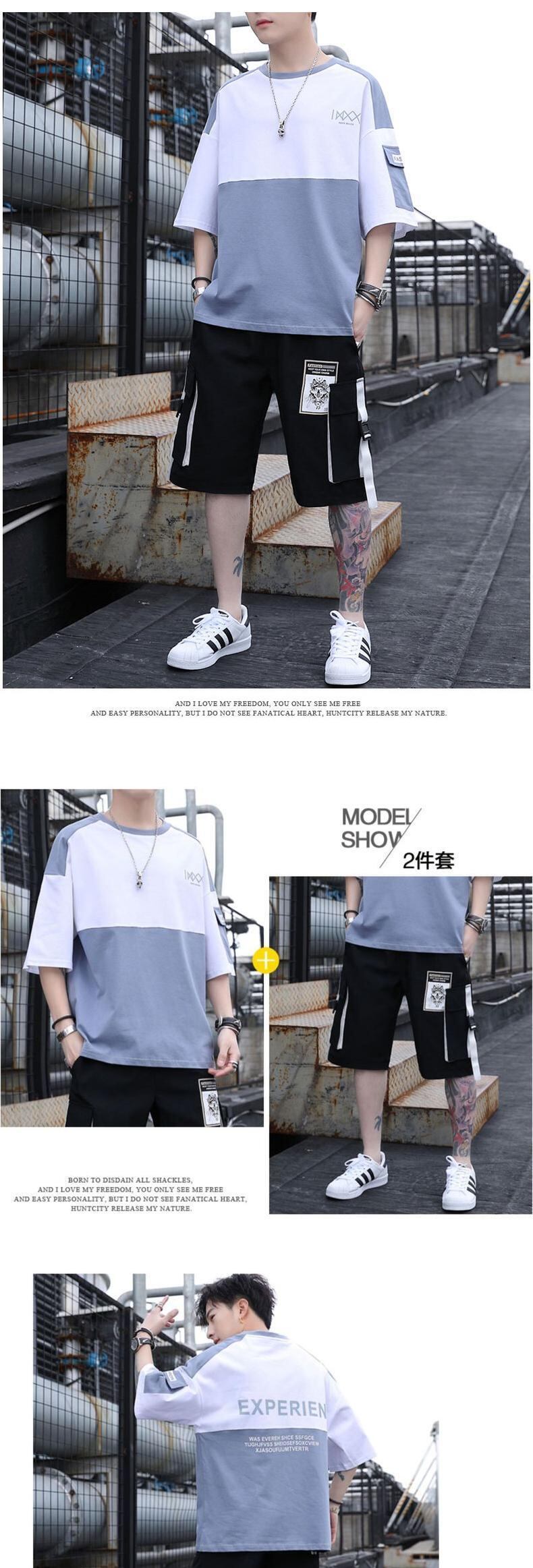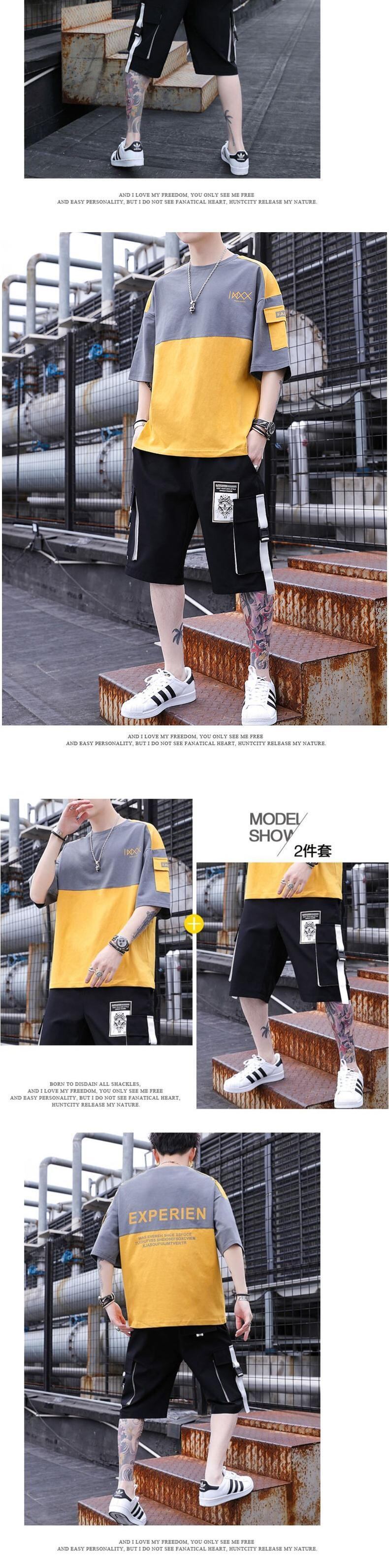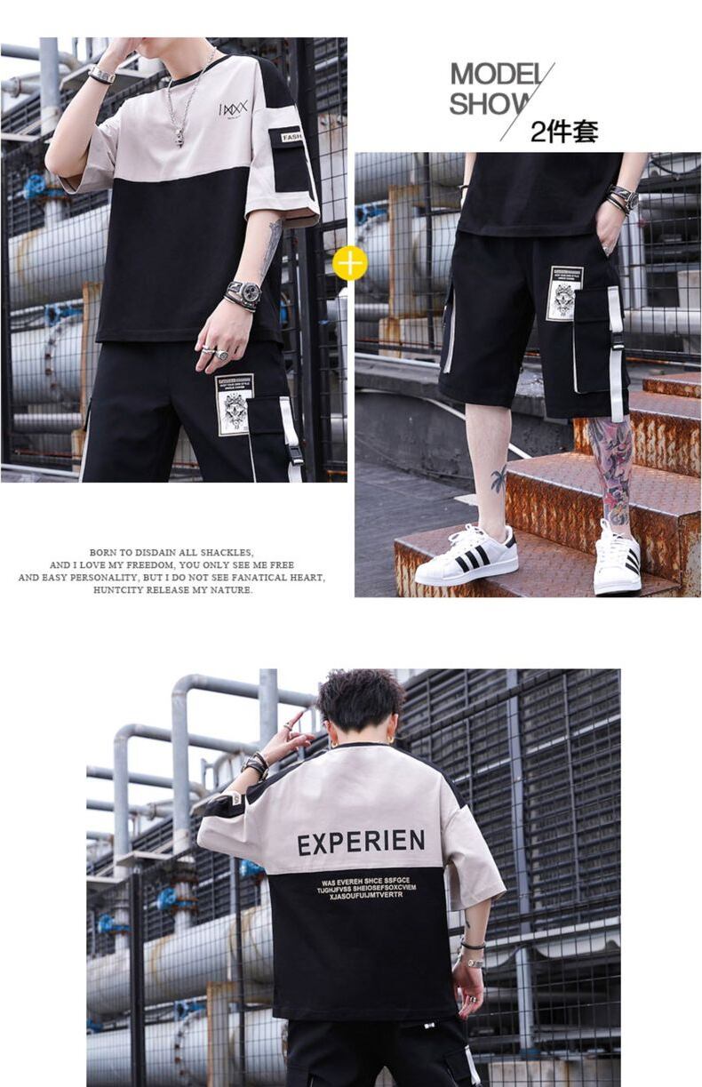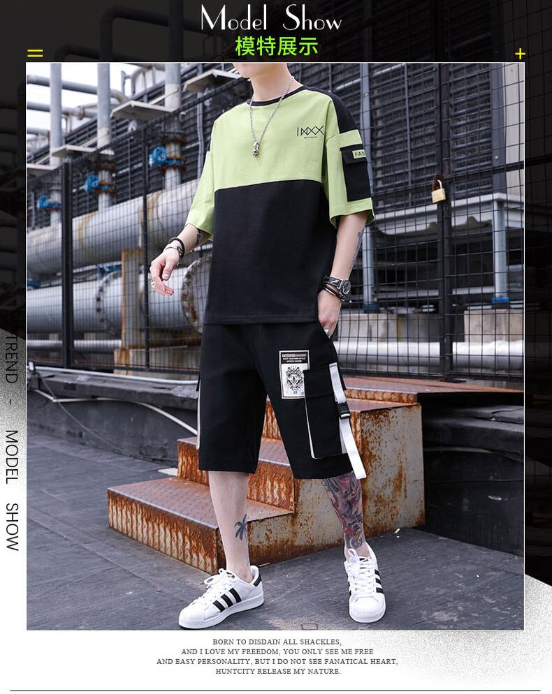 Tooling short-sleeved t-shirt men's summer cotton set casual and handsome with trendy men's junior high student suit コットン カジュアル サマー 夏物 Tシャツ doushi92123687397