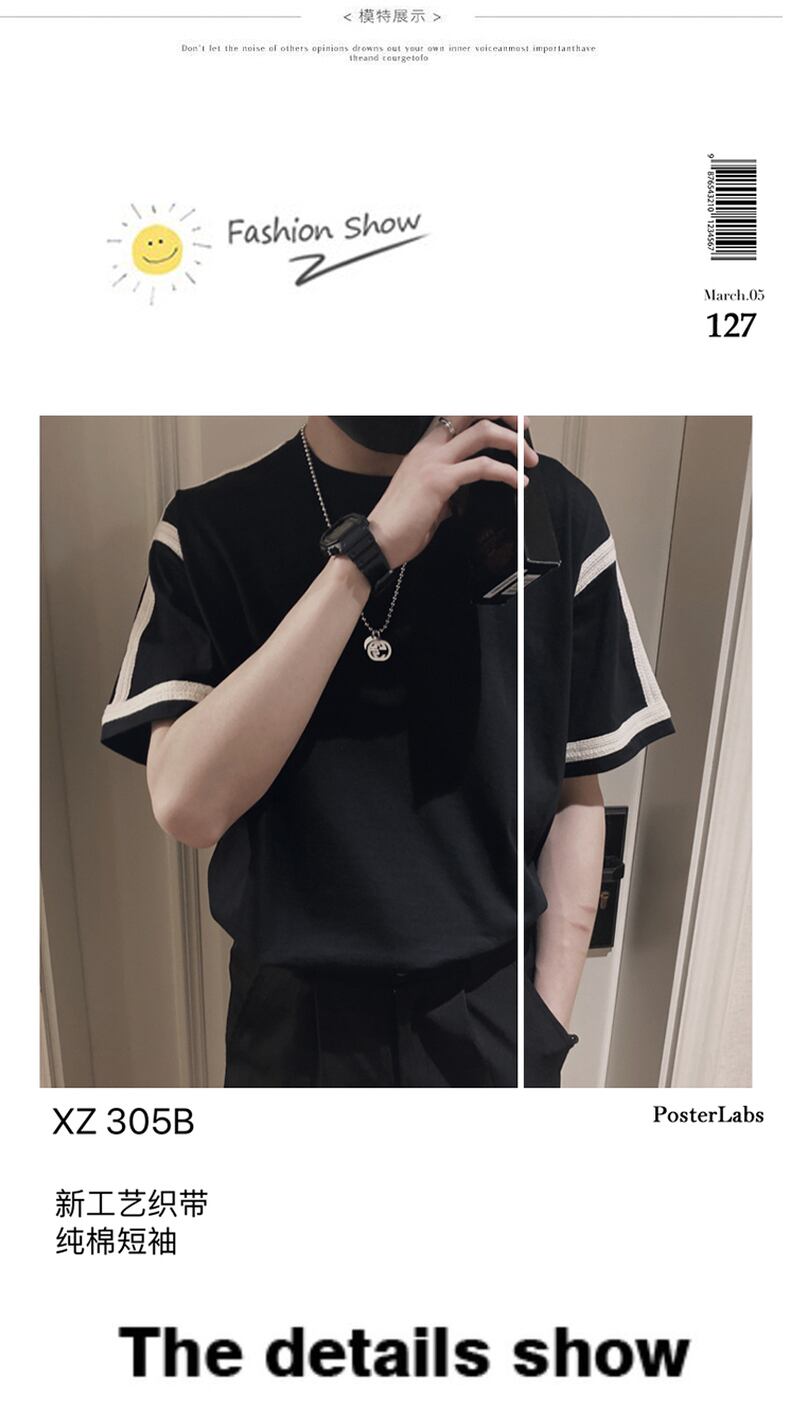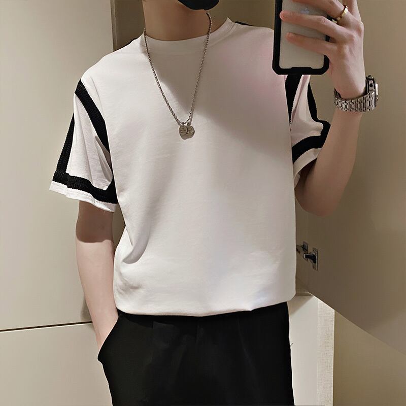 Trendy men's t-shirt 2022 new summer short-sleeved ins color matching trend all-match clothes loose tide brand super five-point sleeves サマー 夏物 Tシャツ doushi20523910927