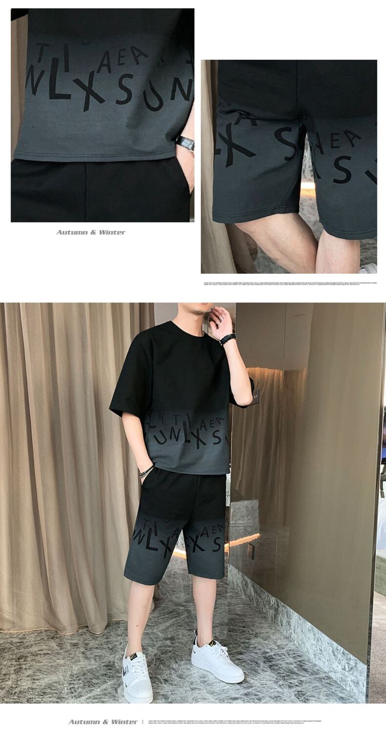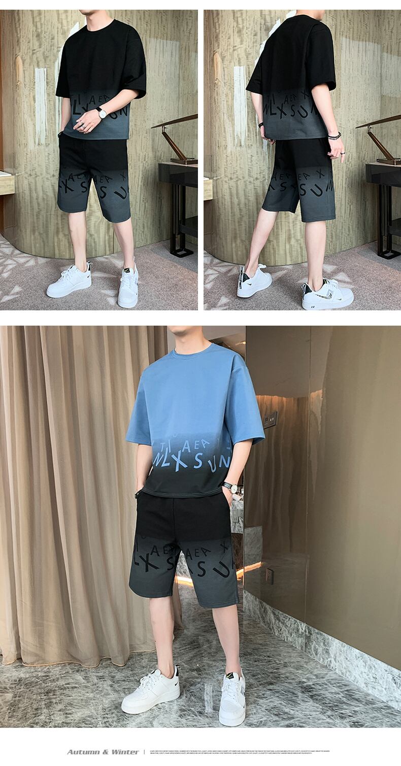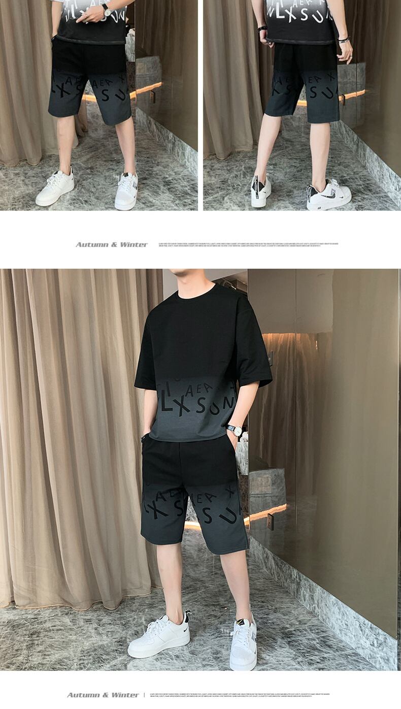 2022 summer youth shorts suit casual sports handsome matching clothes trendy short-sleeved men's T-shirt set カジュアル サマー 夏物 ショーツ ブルマー Tシャツ doushi2040639457