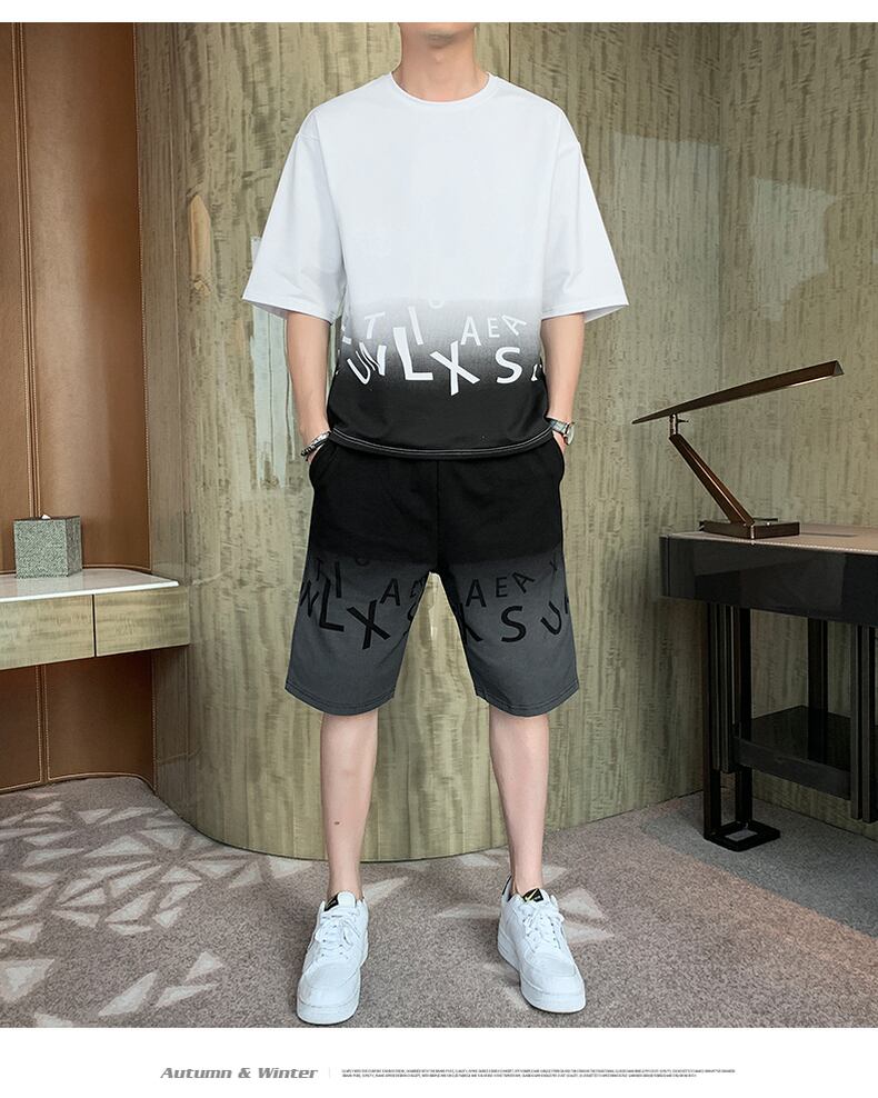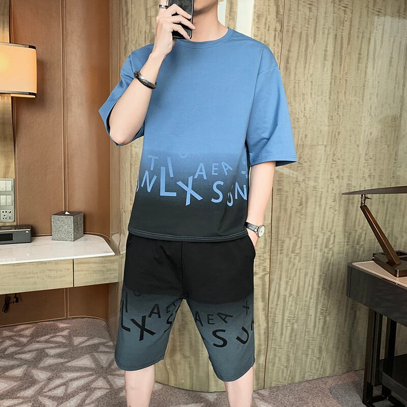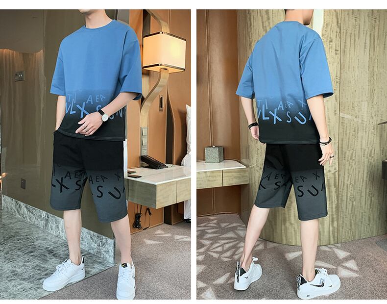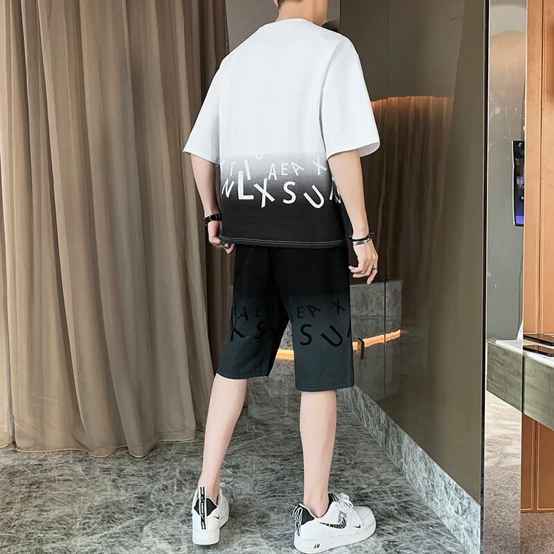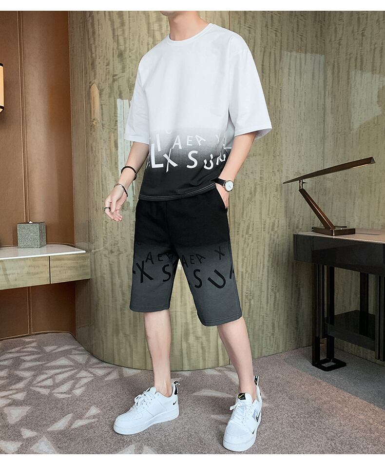 2022 summer youth shorts suit casual sports handsome matching clothes trendy short-sleeved men's T-shirt set カジュアル サマー 夏物 ショーツ ブルマー Tシャツ doushi2040639457