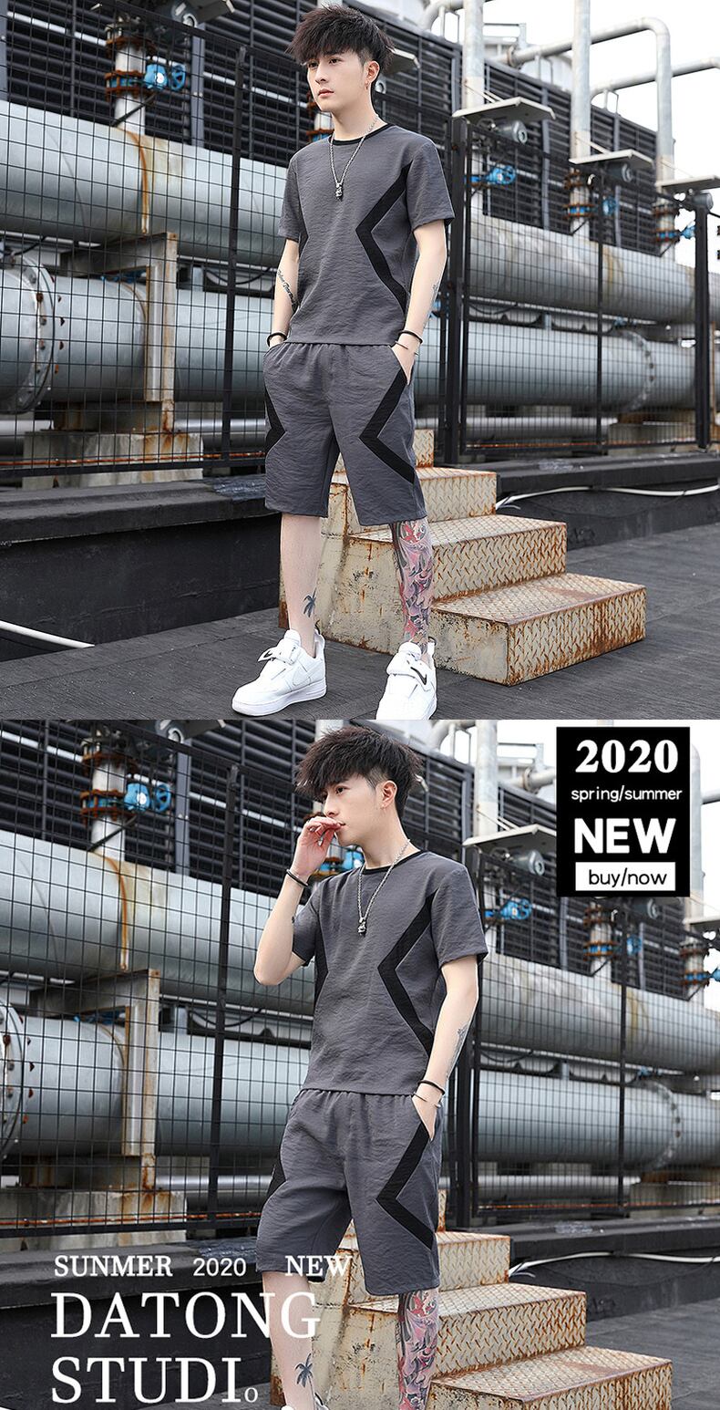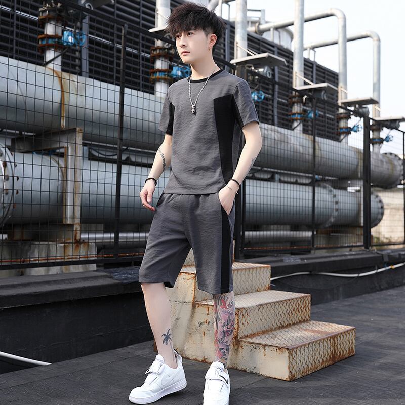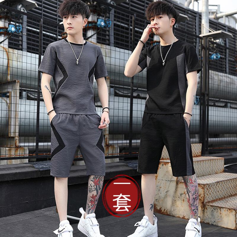 Summer men's suit ice silk trend casual sports shorts set with handsome slim men's short-sleeved t-shirt カジュアル サマー 夏物 ショーツ ブルマー スリム シルク Tシャツ doushi93652217392
