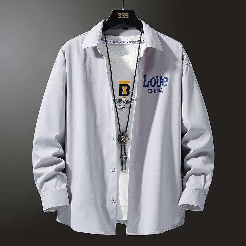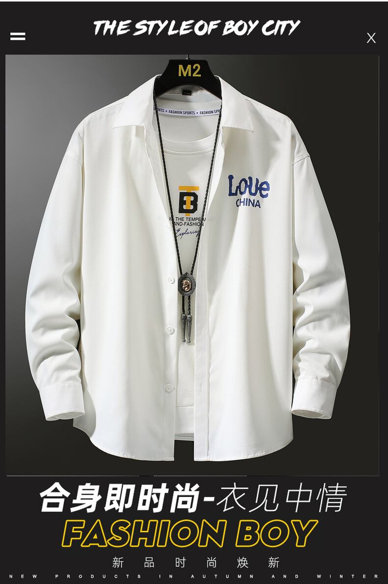 long-sleeved shirt men's 2022 new spring and summer loose tide brand white autumn shirt top clothes coat ロング ホワイト スプリング 春物 サマー 夏物 オータム 秋物 doushi83101710498