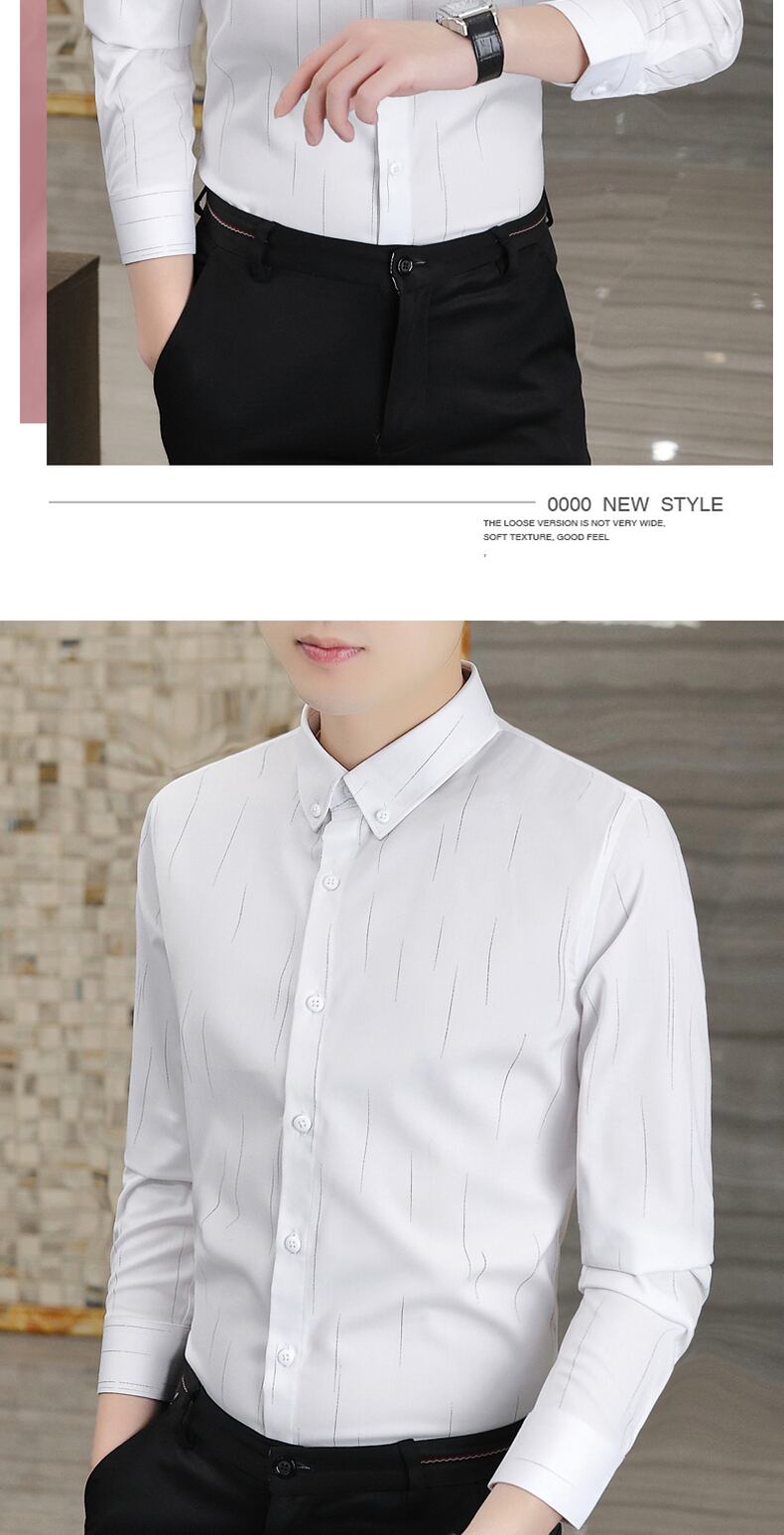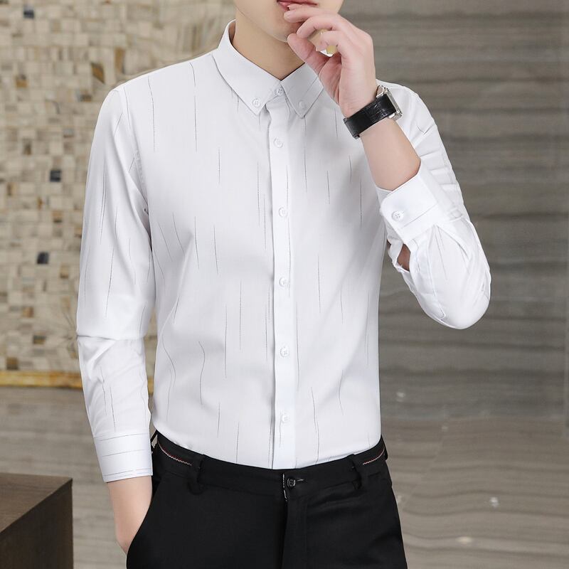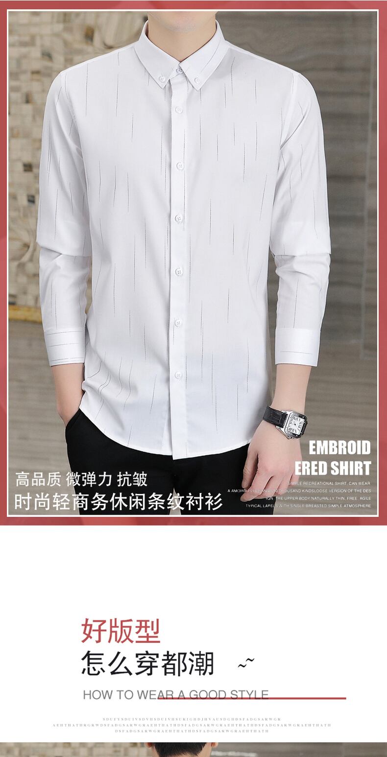 Men's shirts 2022 spring new non-iron senior shirts men's striped youth casual gray high-end inch shirt カジュアル シャツ スプリング 春物 ストライプ doushi92356752481