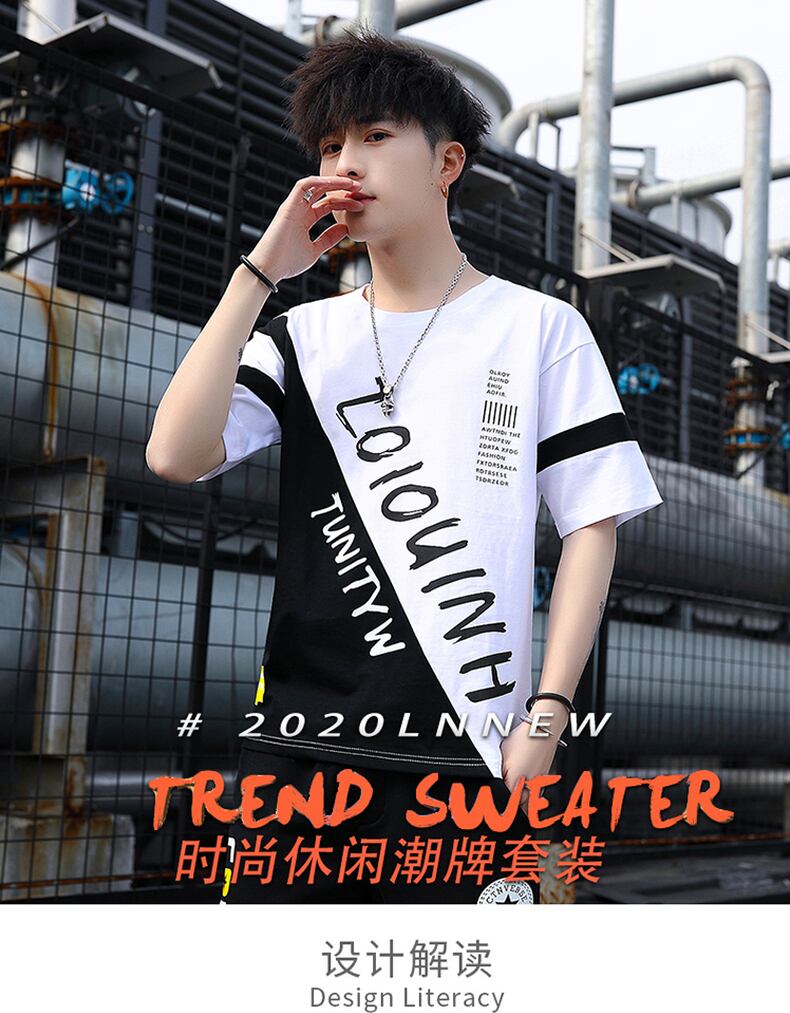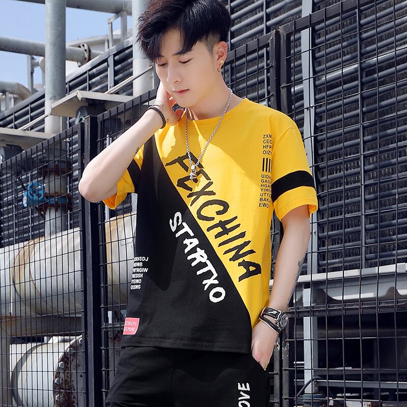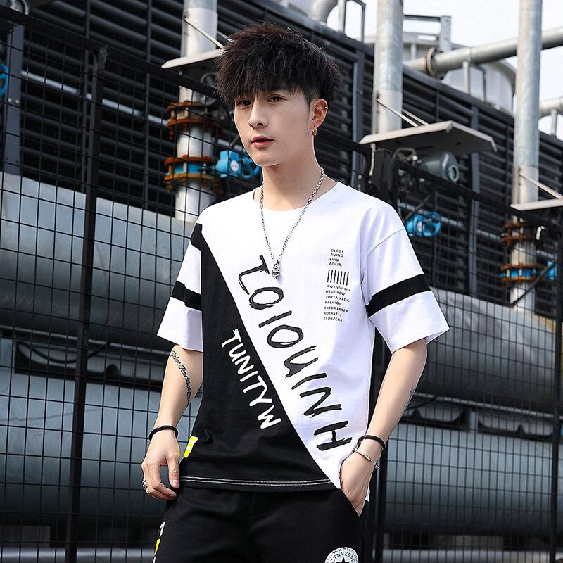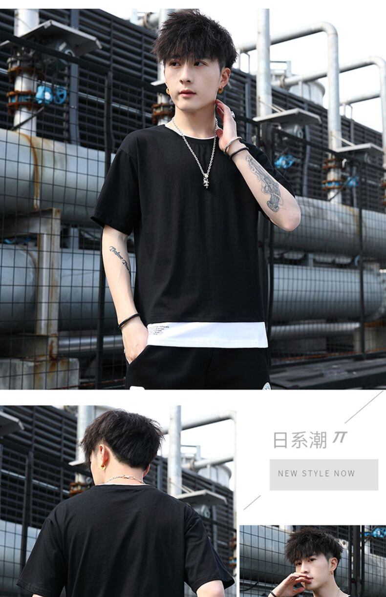 Summer men's short-sleeved T-shirt wide version loose half-sleeved T-shirt Tide brand ins men's trend bottoming shirt top clothes サマー 夏物 Tシャツ doushi56042082319