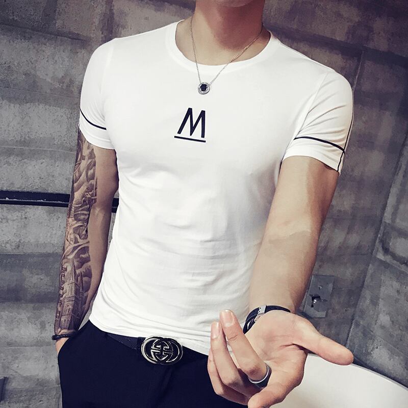 Short-sleeved men's T-shirt version of the trendy summer dress body tucked half-sleeved 2022 summer social trend personality tide brand t-shirt サマー 夏物 Tシャツ doushi87456329226