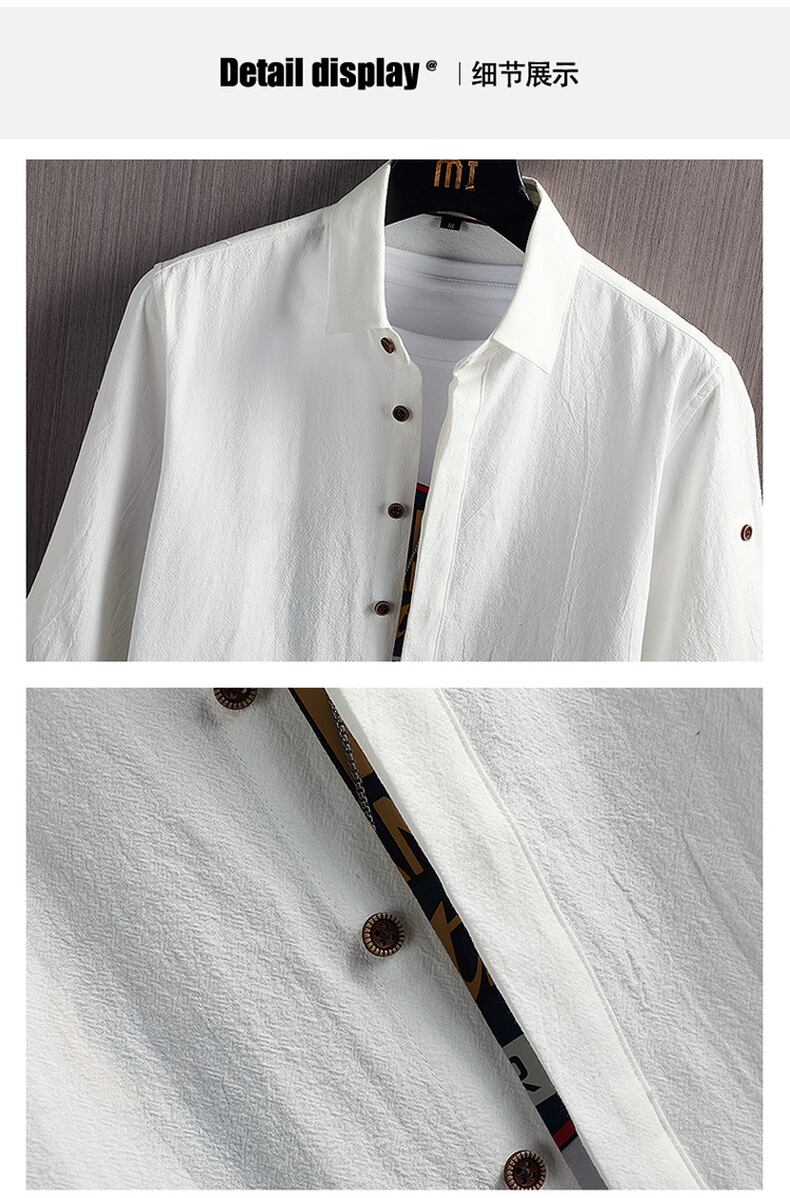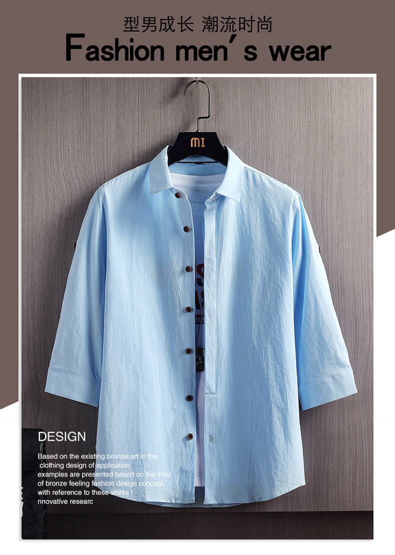 Cotton summer three-quarter sleeve shirt men's casual Chinese style spring and autumn loose long-sleeved linen shirt thin inch shirt ロング コットン カジュアル スプリング 春物 サマー 夏物 オータム 秋物 doushi52766186880