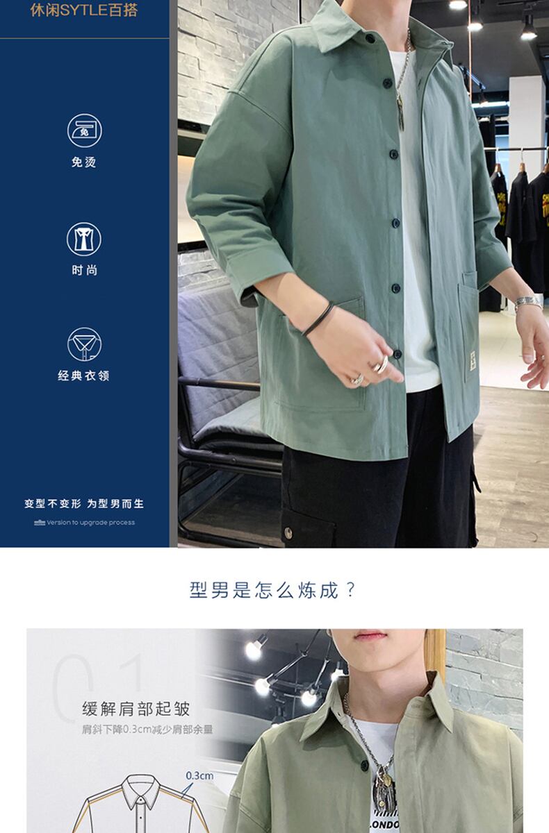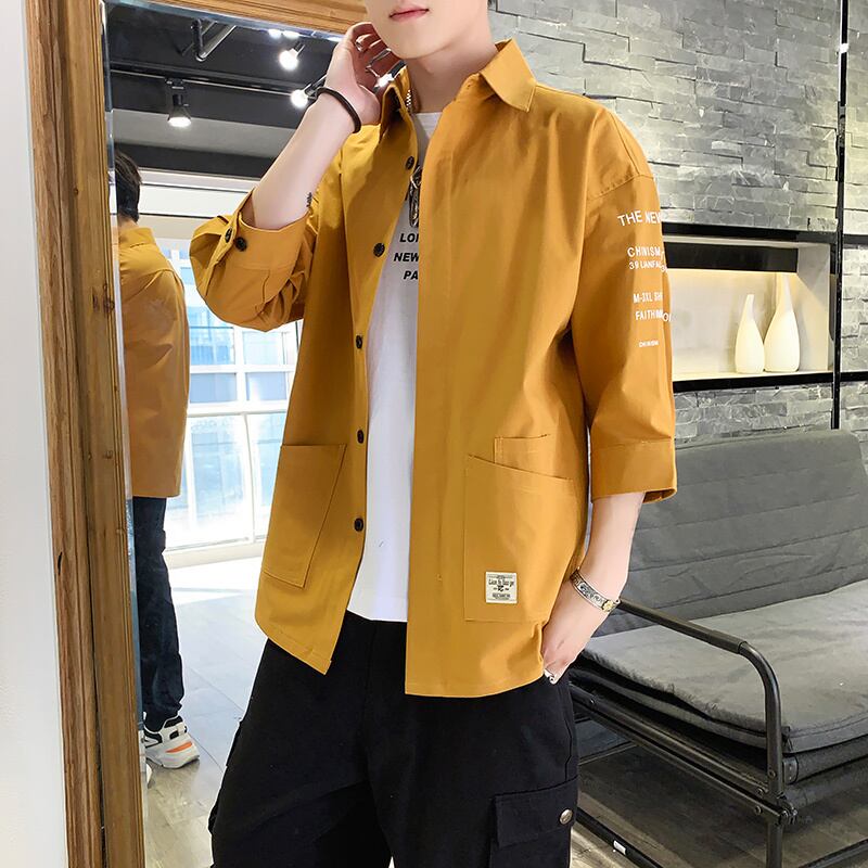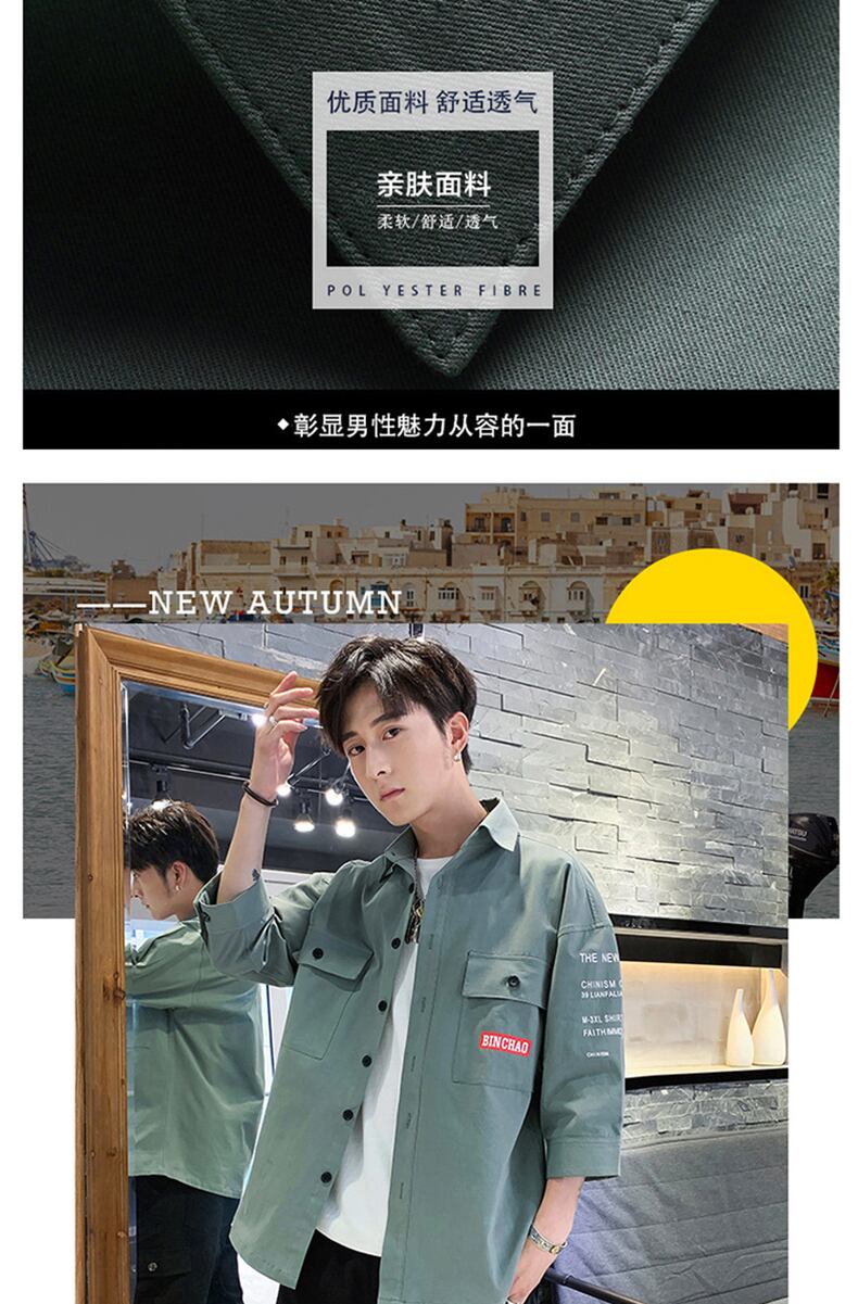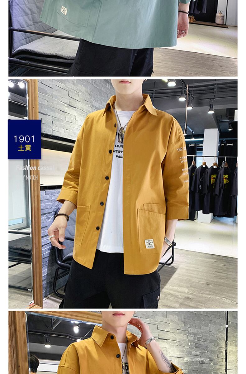 Cotton shirt men's summer new three-quarter sleeve lapel jacket men's tide brand youth five-point sleeve tooling shirt コットン サマー 夏物 doushi42217074024