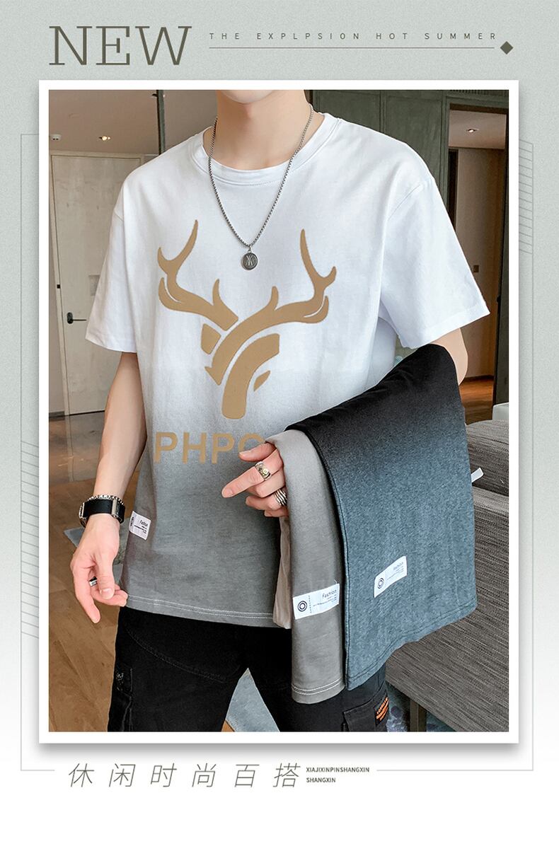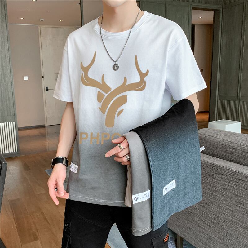 Deer head boy's top ins Hong Kong style loose short-sleeved t-shirt tide brand trend young students new summer clothes サマー 夏物 Tシャツ doushi6921117438