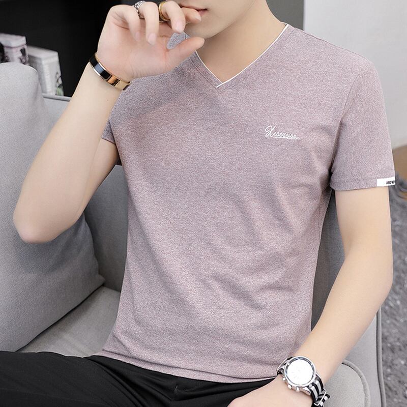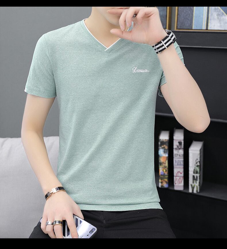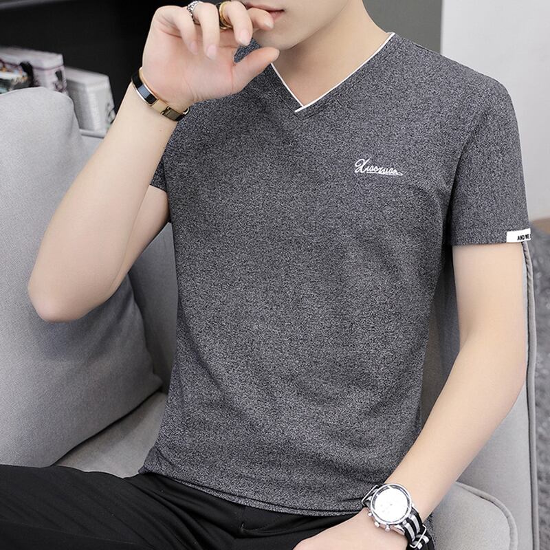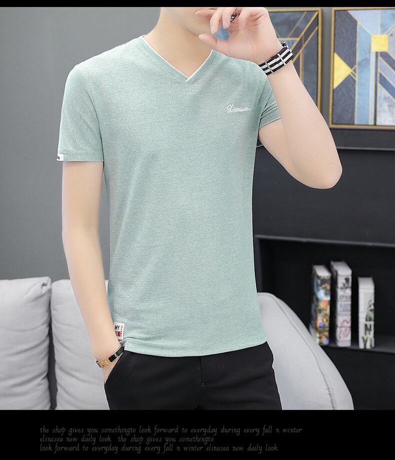 2022 new summer short-sleeved t-shirt men's tide brand trend slim V-neck half-sleeve bottoming shirt summer t-shirt top サマー 夏物 Vネック スリム Tシャツ doushi9907397211