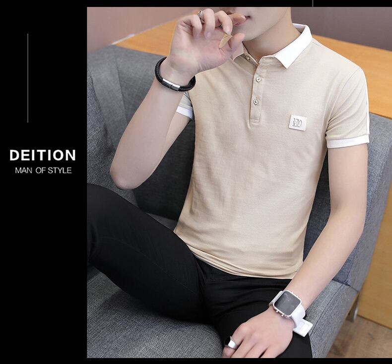 Summer short-sleeved t-shirt men's cotton lapel half-sleeved slim polo shirt casual youth men's t-shirt trend handsome コットン カジュアル サマー 夏物 スリム Tシャツ doushi24506271089