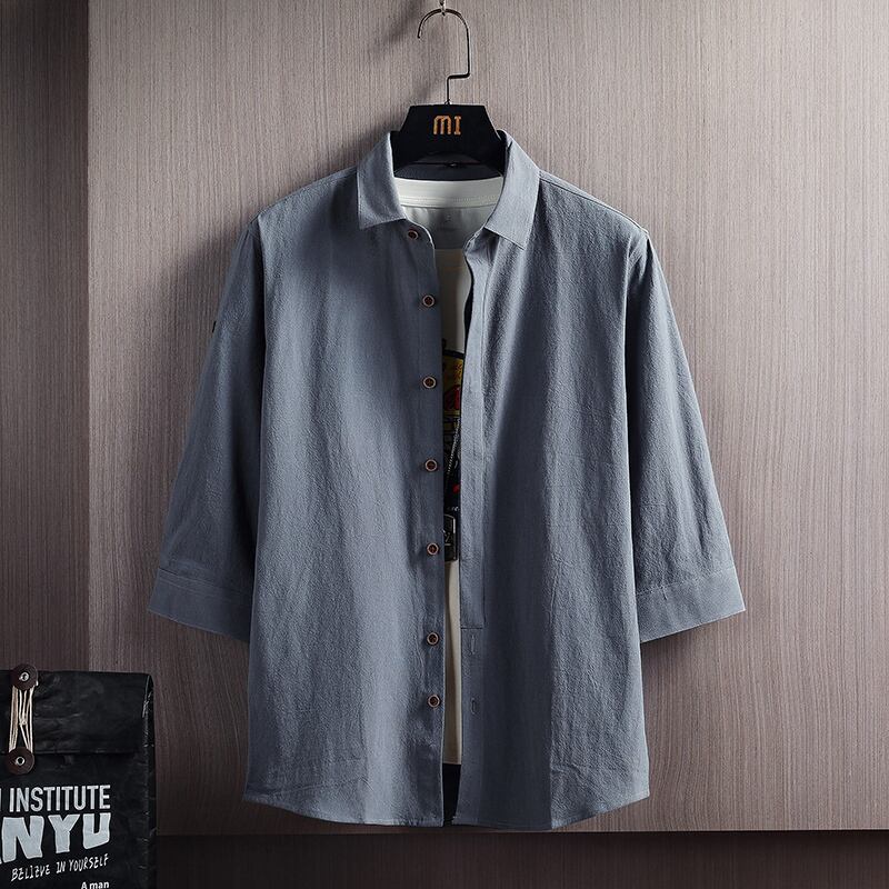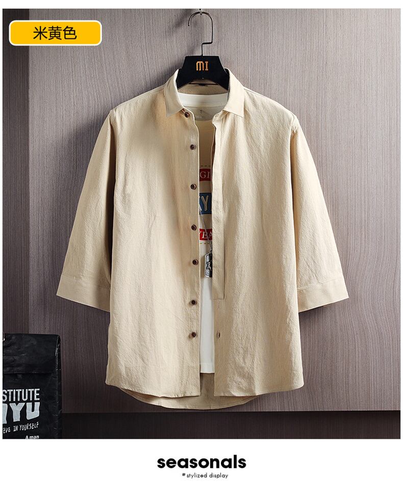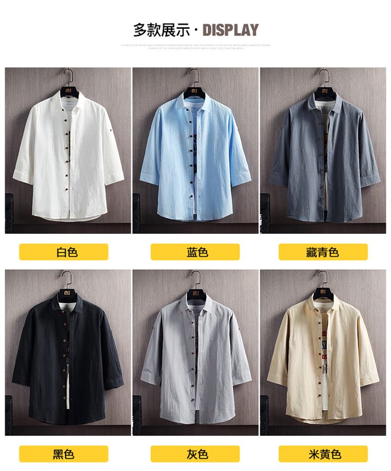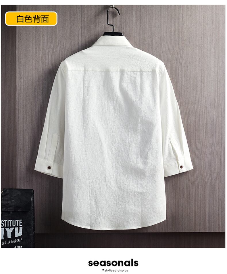 White shirt men's version of linen three-quarter sleeve inch shirt loose casual cotton solid color mid-sleeve short-sleeved cotton and linen shirt tide ホワイト コットン カジュアル ソリッドカラー doushi40729216508