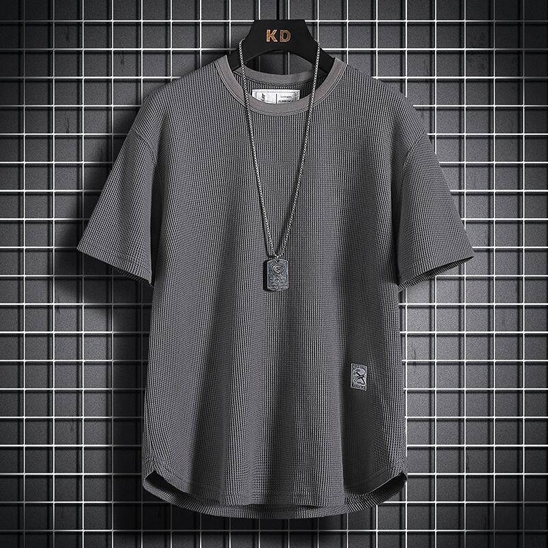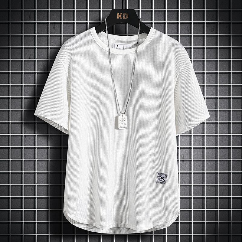 Men's Short Sleeve T-Shirt 2022 Summer Loose Round Neck Waffle Half Sleeve T-Shirt Trend Versatile Breathable Bottoming Shirt ショート 半袖 ハーフスリーブ サマー 夏物 Oネック Tシャツ doushi87101324708