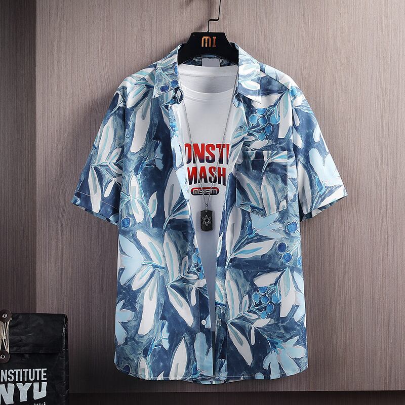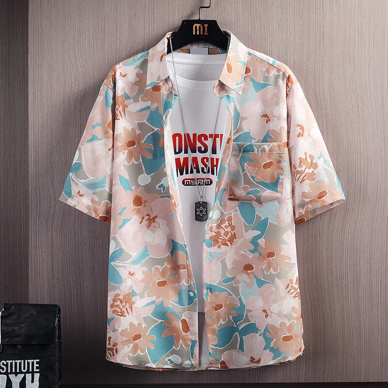 Short-sleeved floral shirt men's summer thin inch shirt ruffian handsome ice silk loose Hawaiian shirt casual jacket beach カジュアル サマー 夏物 ビーチ 花柄 シルク doushi41309188034