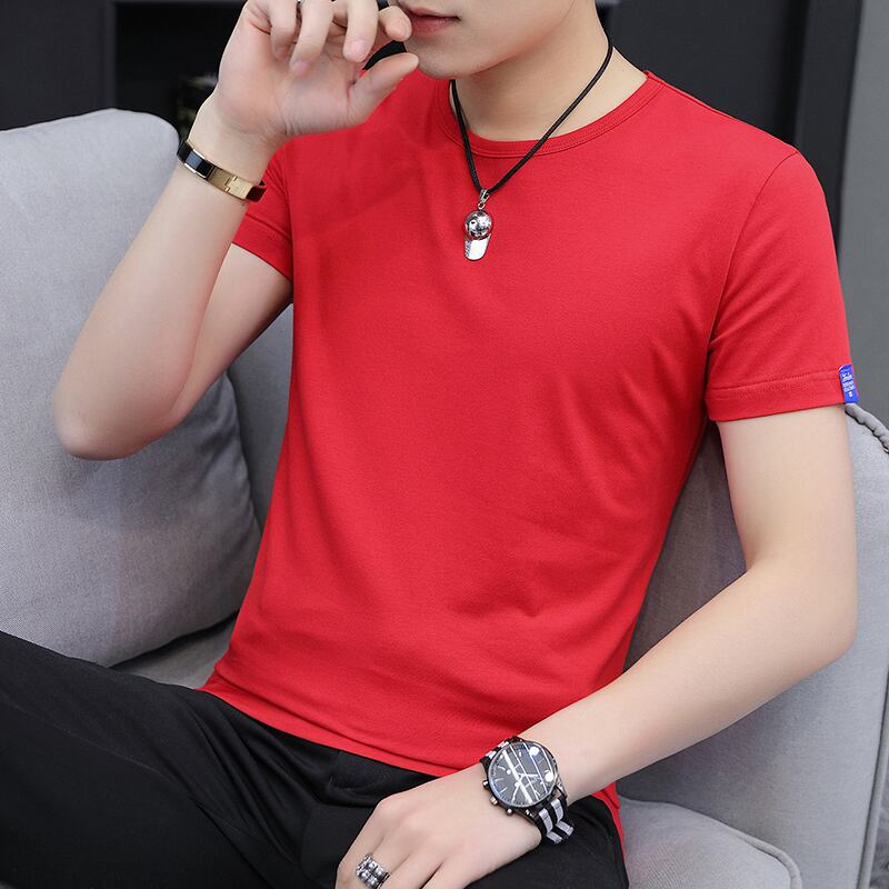 Men's T-Shirt Cotton V-Neck Simple Versatile Short-Sleeve Bottoming Shirt コットン Vネック Tシャツ doushi97095520526