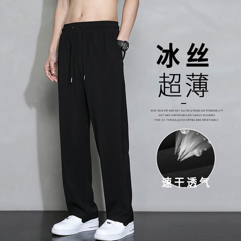 trousers men's summer thin section quick-drying breathable tide brand ice silk pants men's loose sports vertical trousers サマー 夏物 シルク doushi61339020725