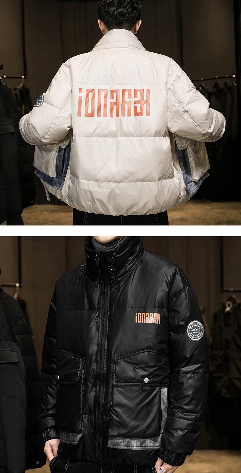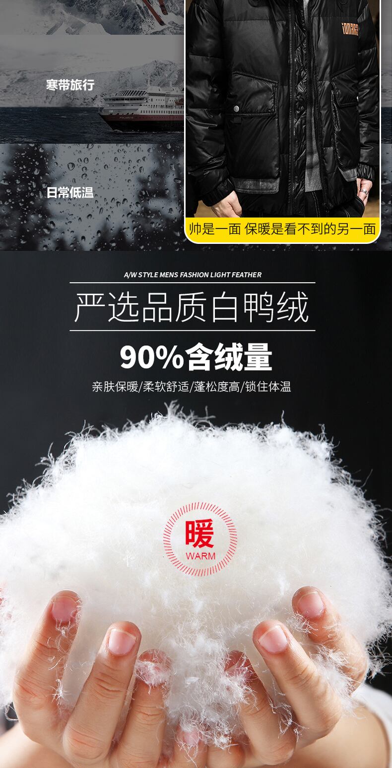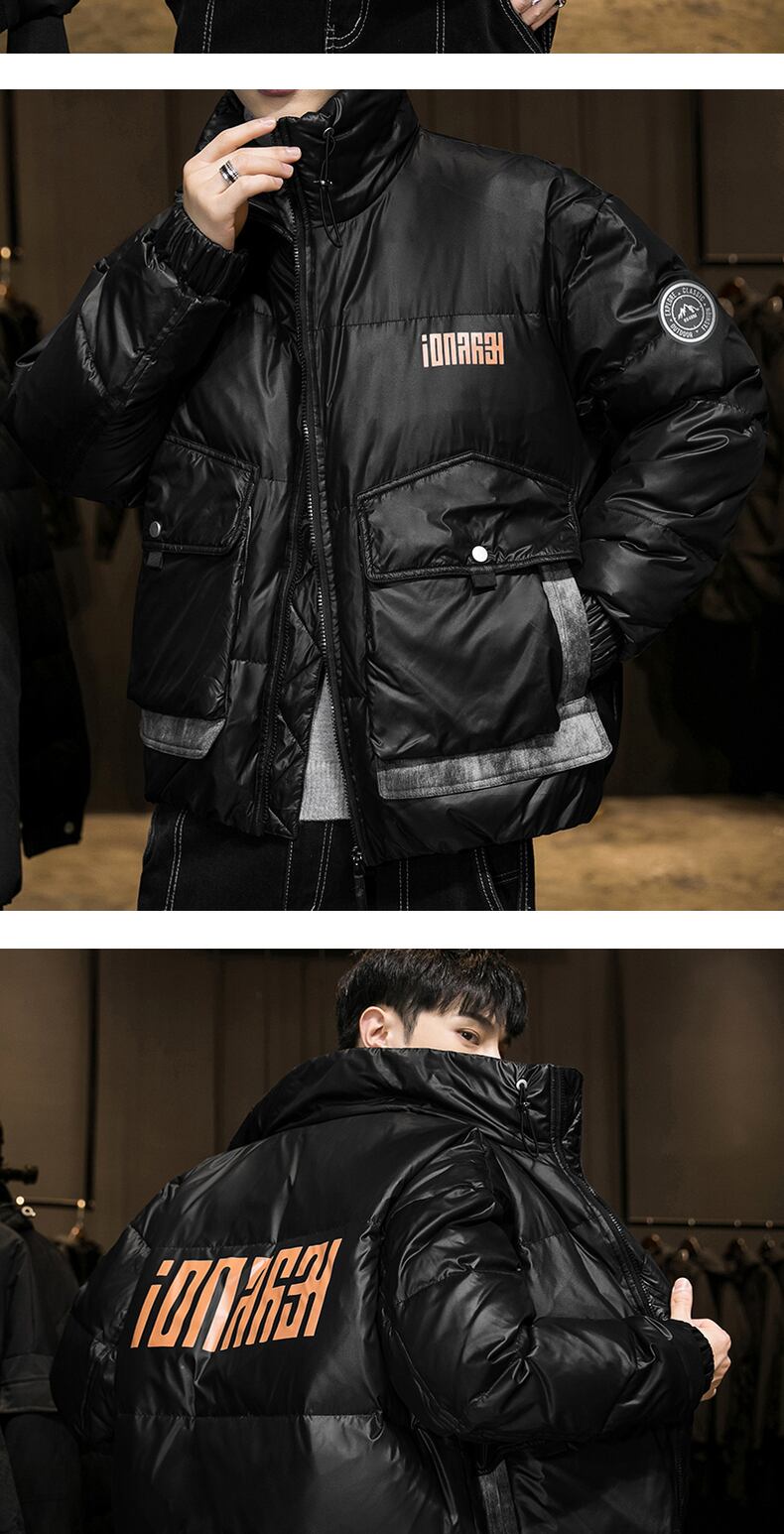 Down jacket men's 2022 new trendy brand plus velvet thickened bright surface short winter white duck down tooling padded jacket ショート ホワイト ウィンター 冬物 doushi85023714721