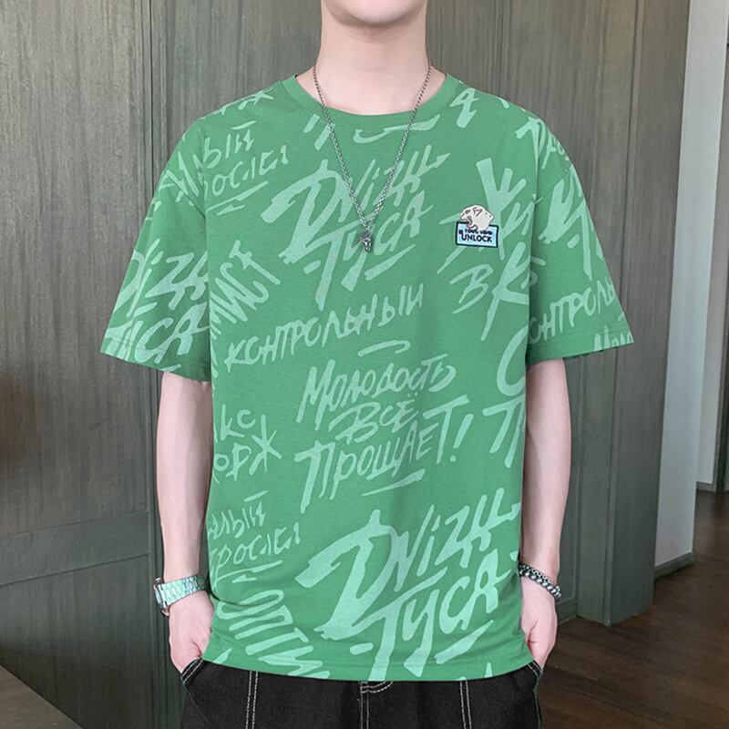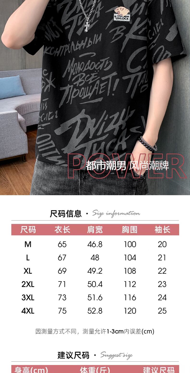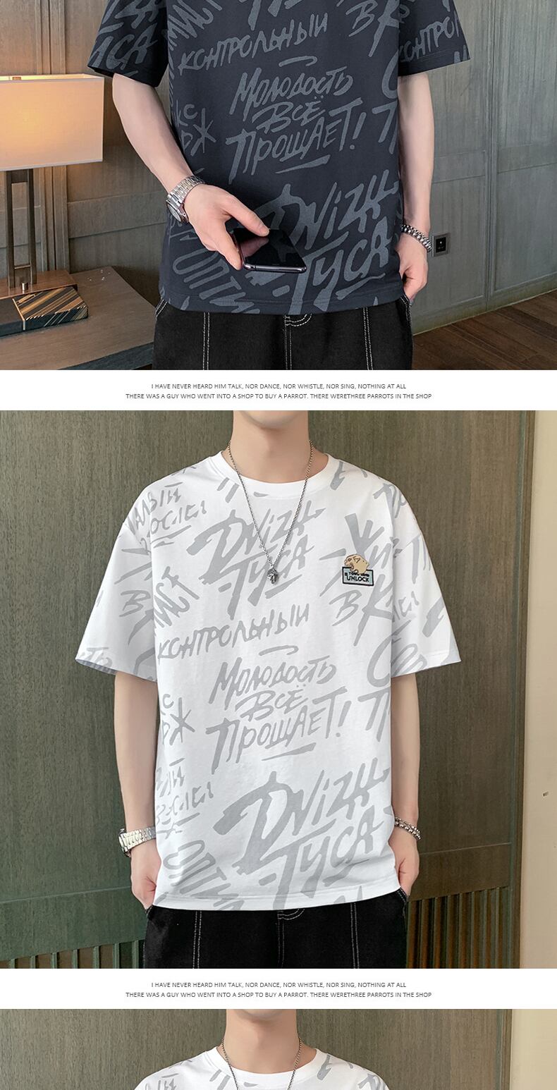 Tide brand fried street short-sleeved t-shirt men's personalized printed t-shirt summer thin half-sleeved top clothes loose summer clothes プリント ストリート サマー 夏物 Tシャツ doushi6424727821