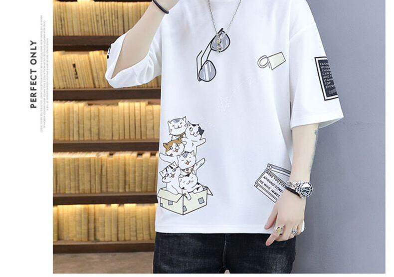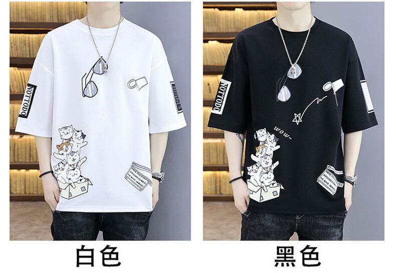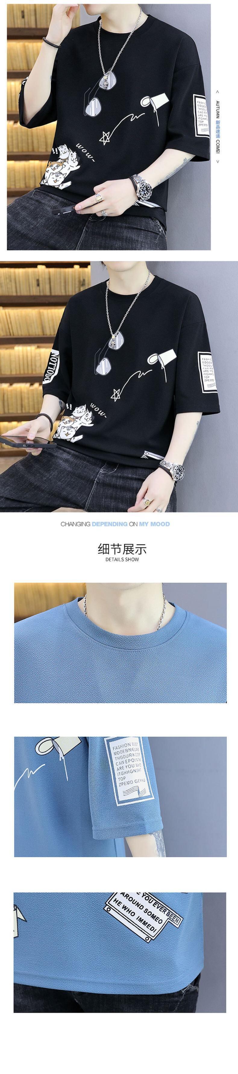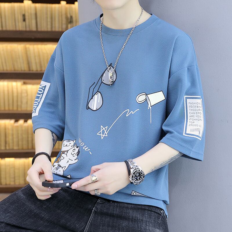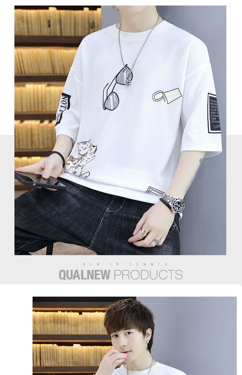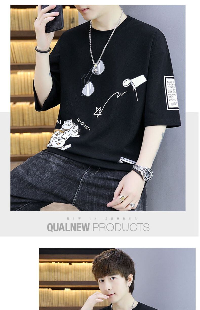 Hong Kong version short-sleeved ice-sensing t-shirt men's summer 2022 new loose seven-point sleeve T-shirt Tide brand thin half-sleeve top サマー 夏物 Tシャツ doushi36675774785