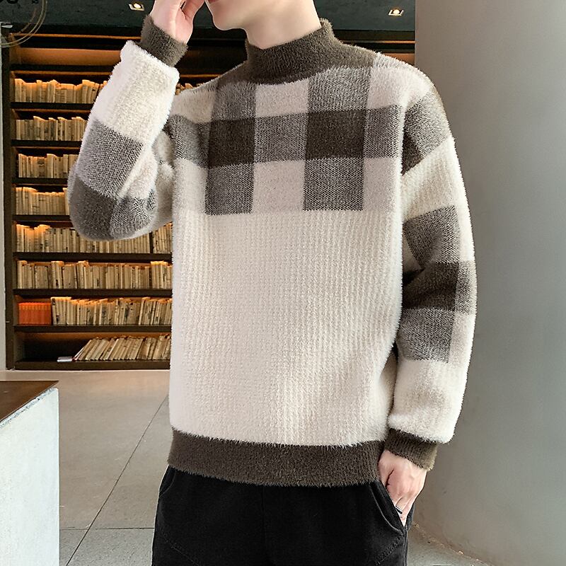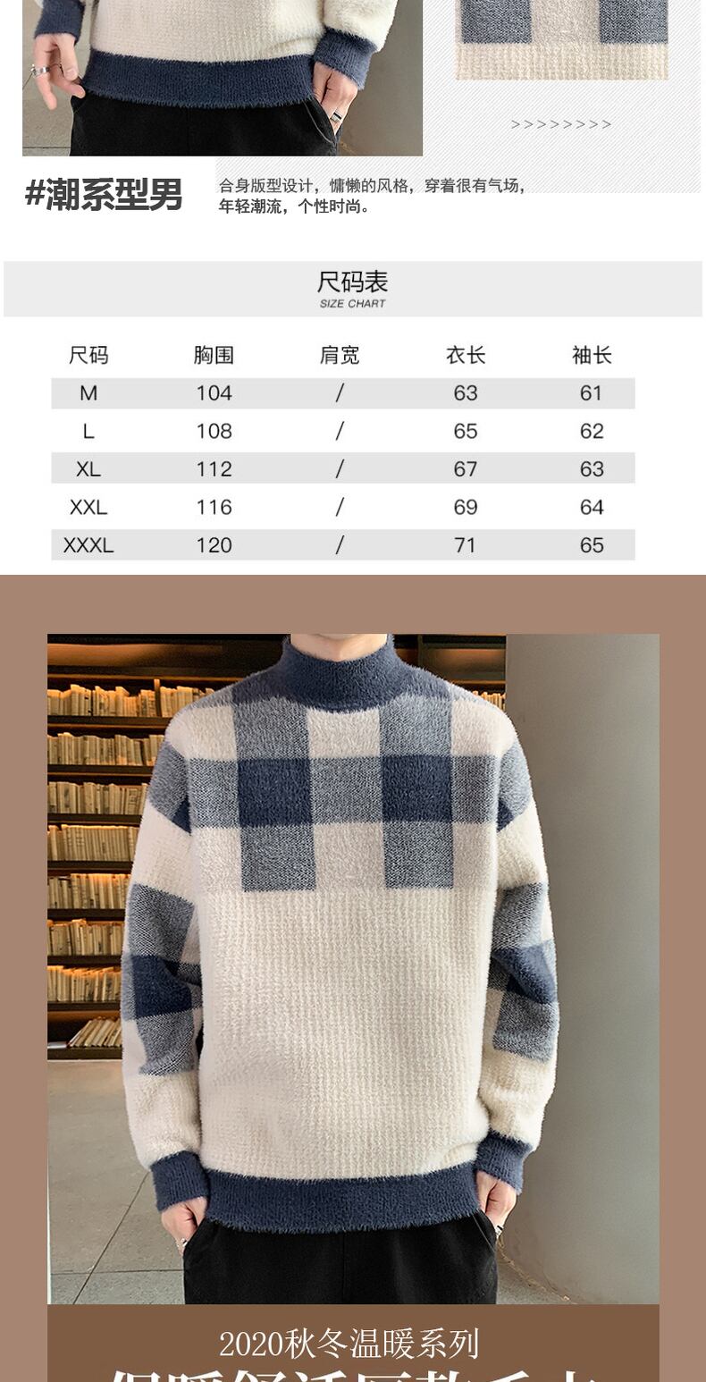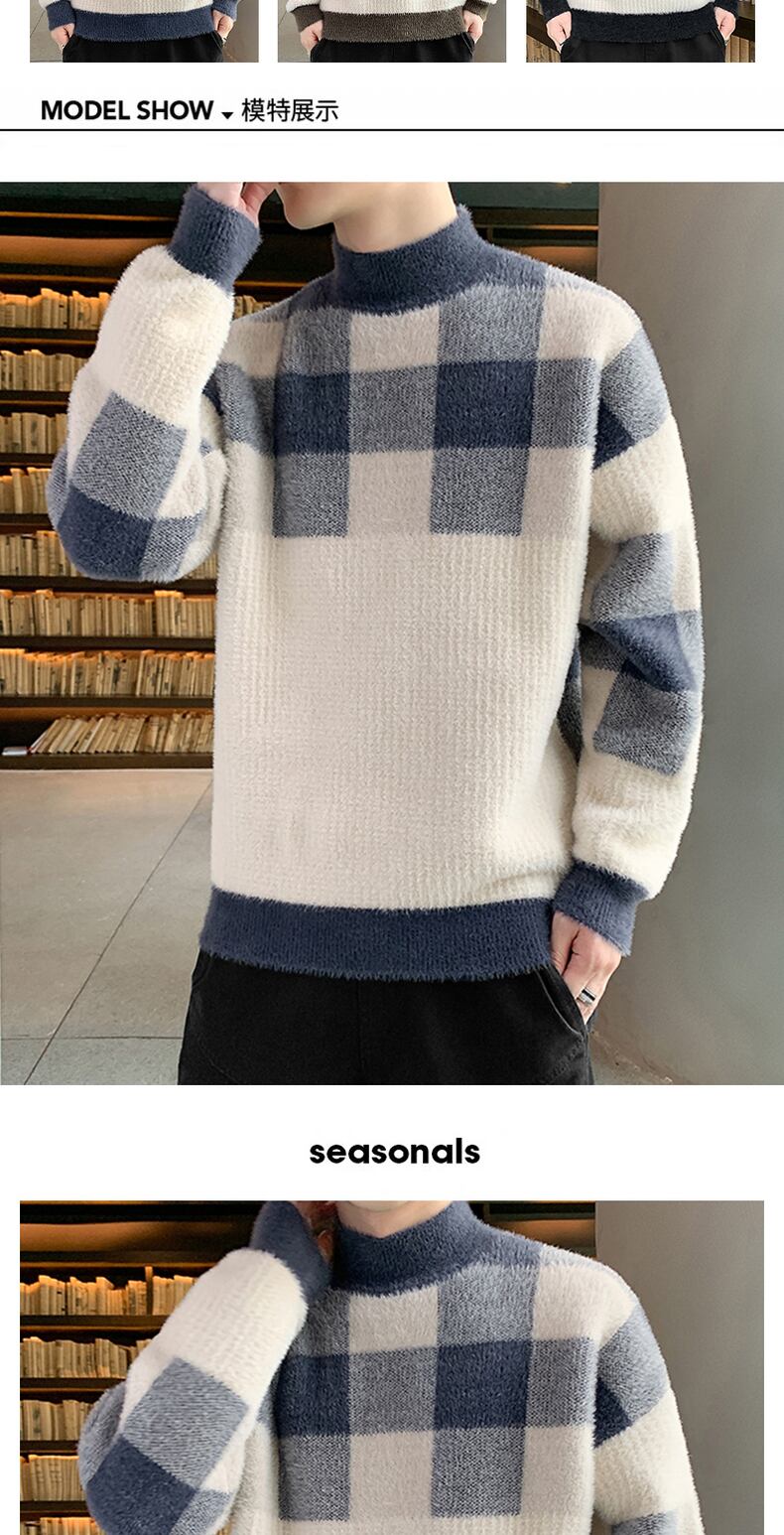 2022 autumn and winter new sweater plus velvet thickened men's mink velvet bottoming knitted sweater half turtleneck popular sweater オータム 秋物 ウィンター 冬物 doushi1007577988