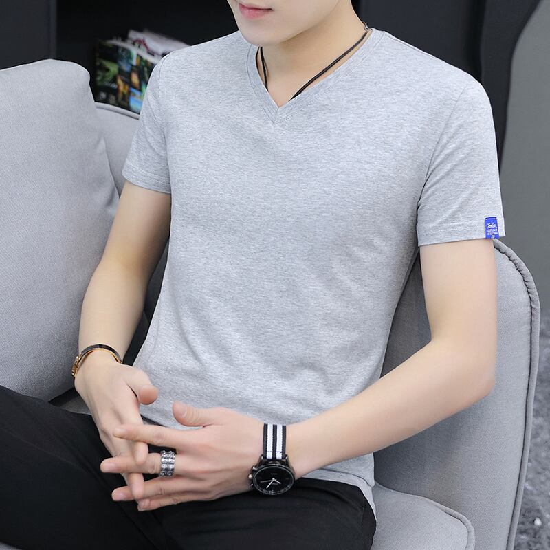 Men's Short Sleeve T-Shirt V-Neck Summer Cotton Pink Slim Ice Silk Half-Sleeve Men's T-Shirt Heart Neck Trend Men's ショート ピンク コットン 半袖 ハーフスリーブ サマー 夏物 Vネック スリム シルク Tシャツ doushi326148033