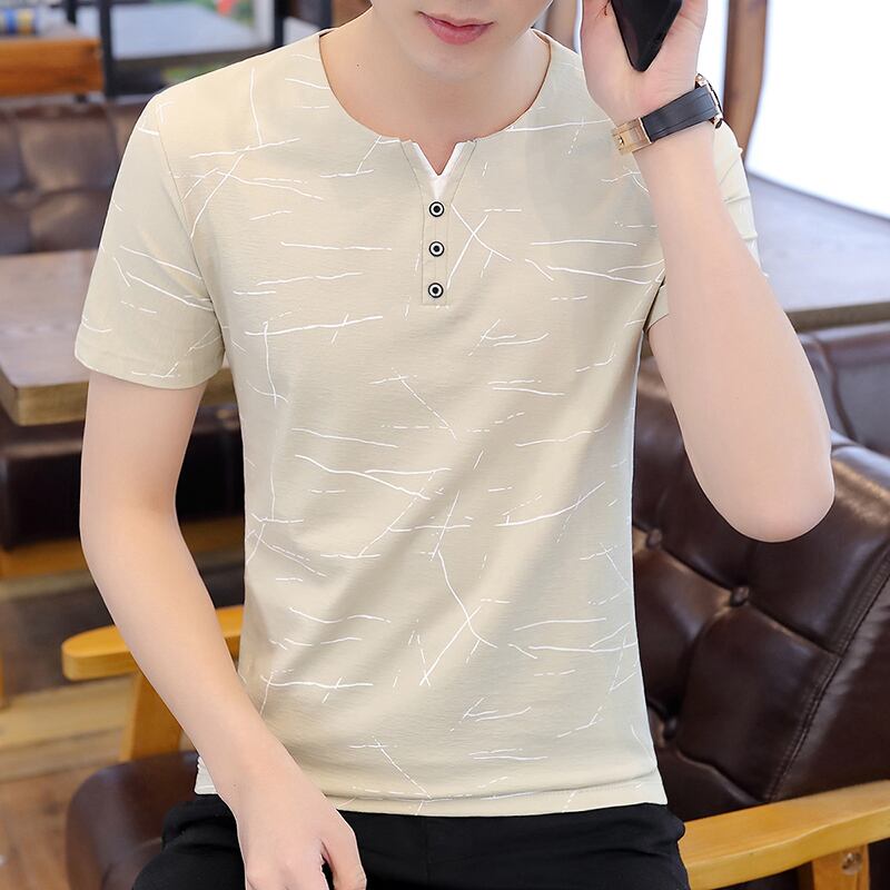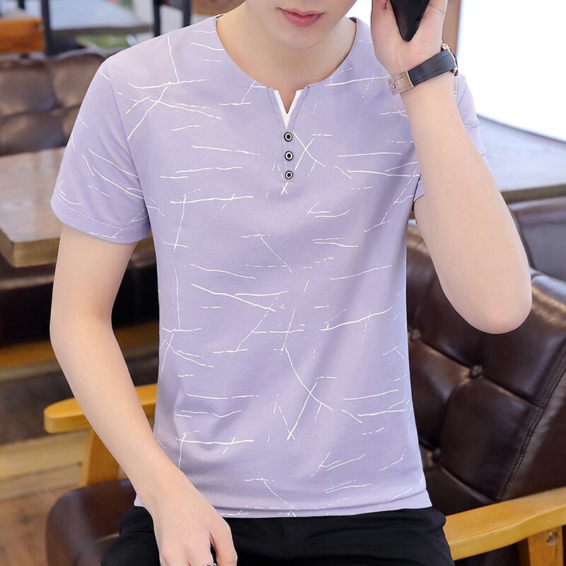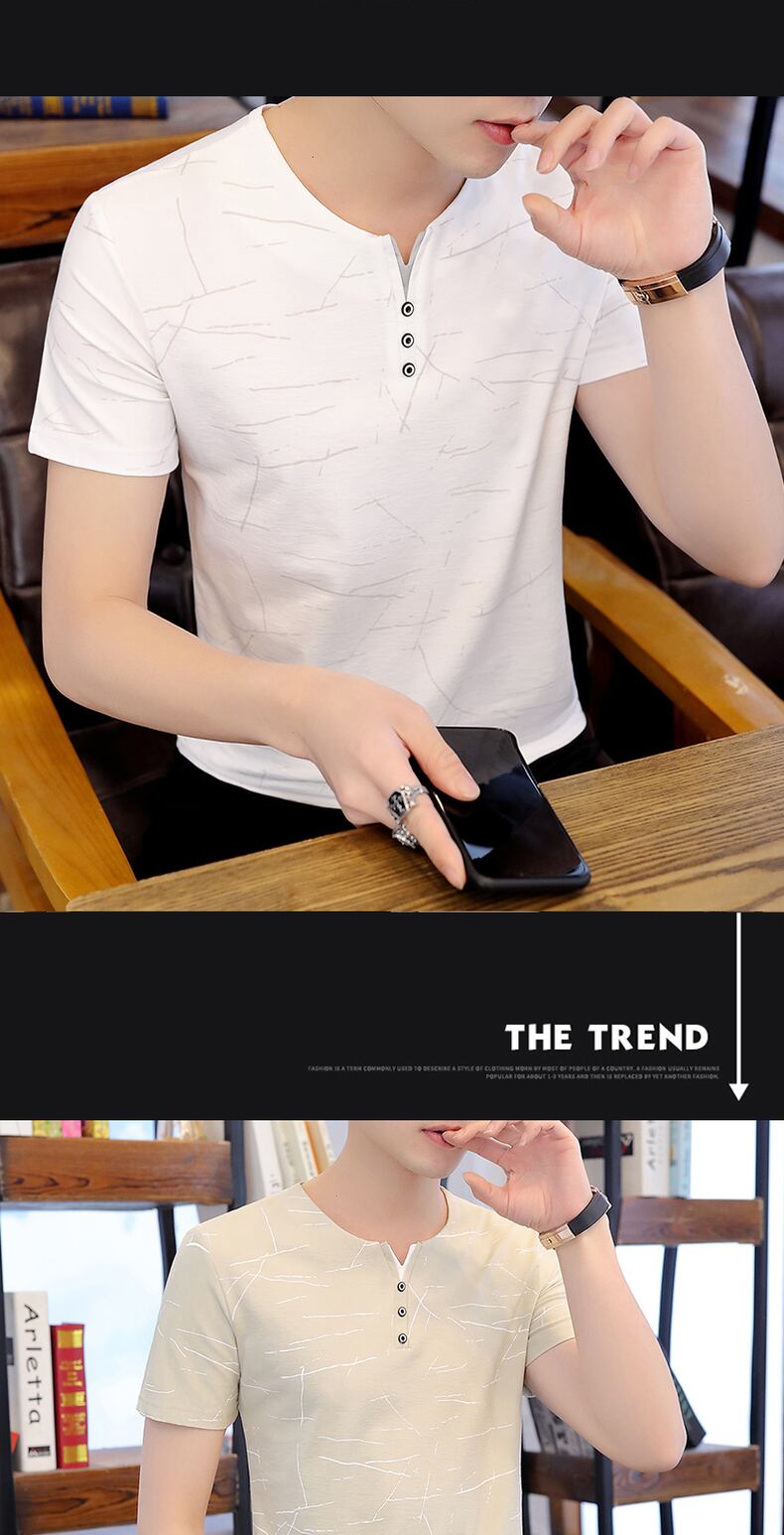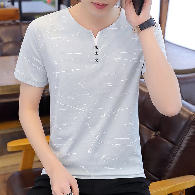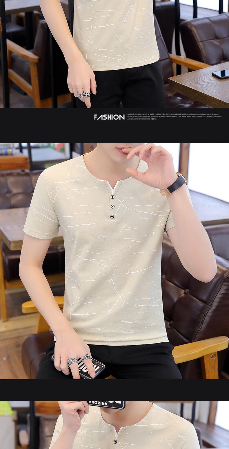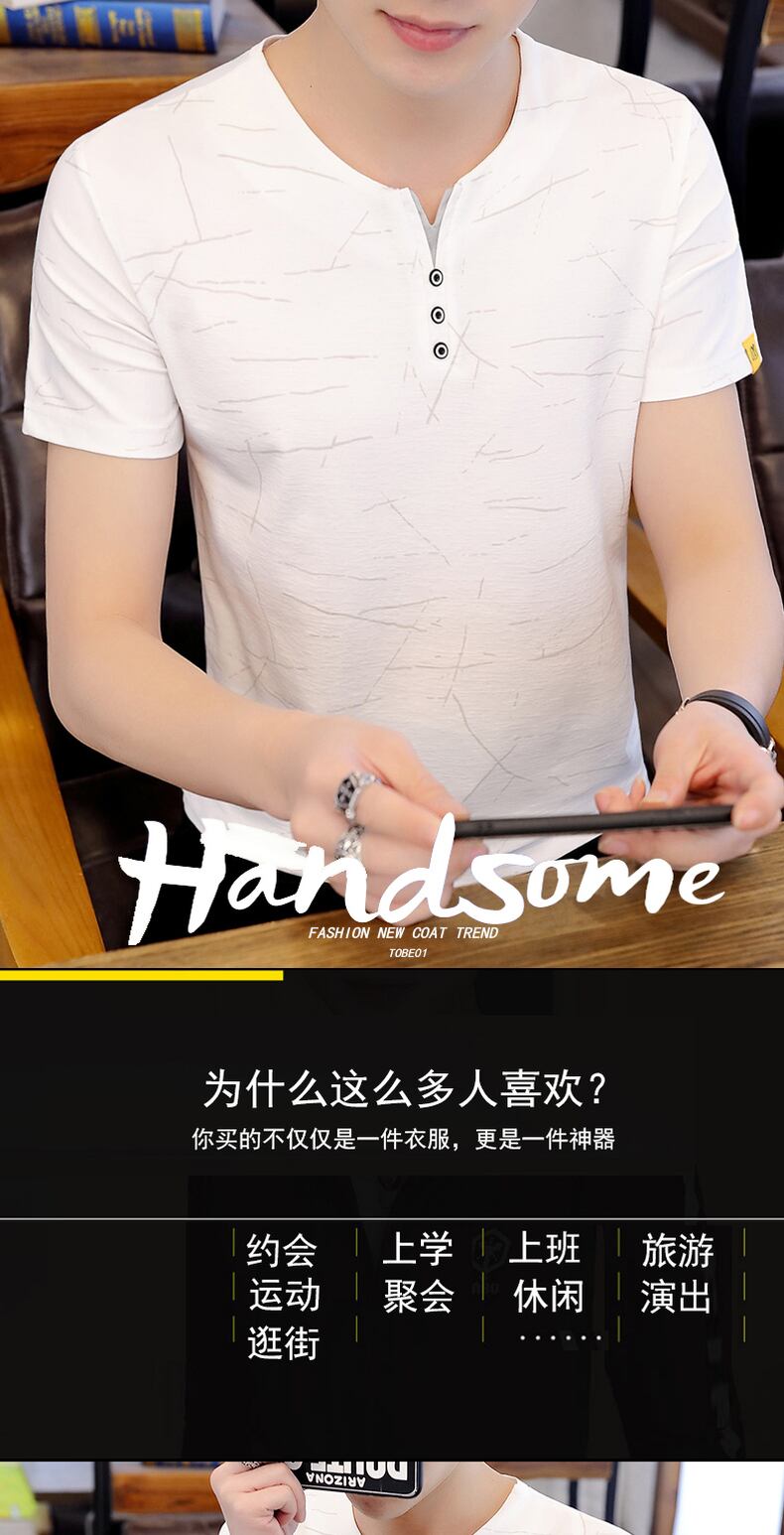 Ice silk V-neck short-sleeved men's t-shirt summer tide brand ins cotton and linen quick-drying t-shirt trend ice-sensing half-sleeve top clothes コットン サマー 夏物 Vネック シルク Tシャツ doushi37047331956