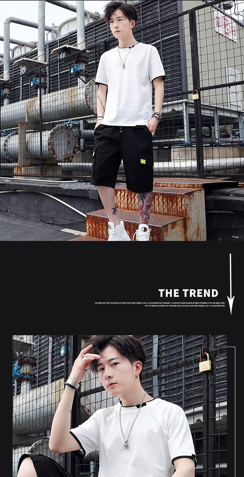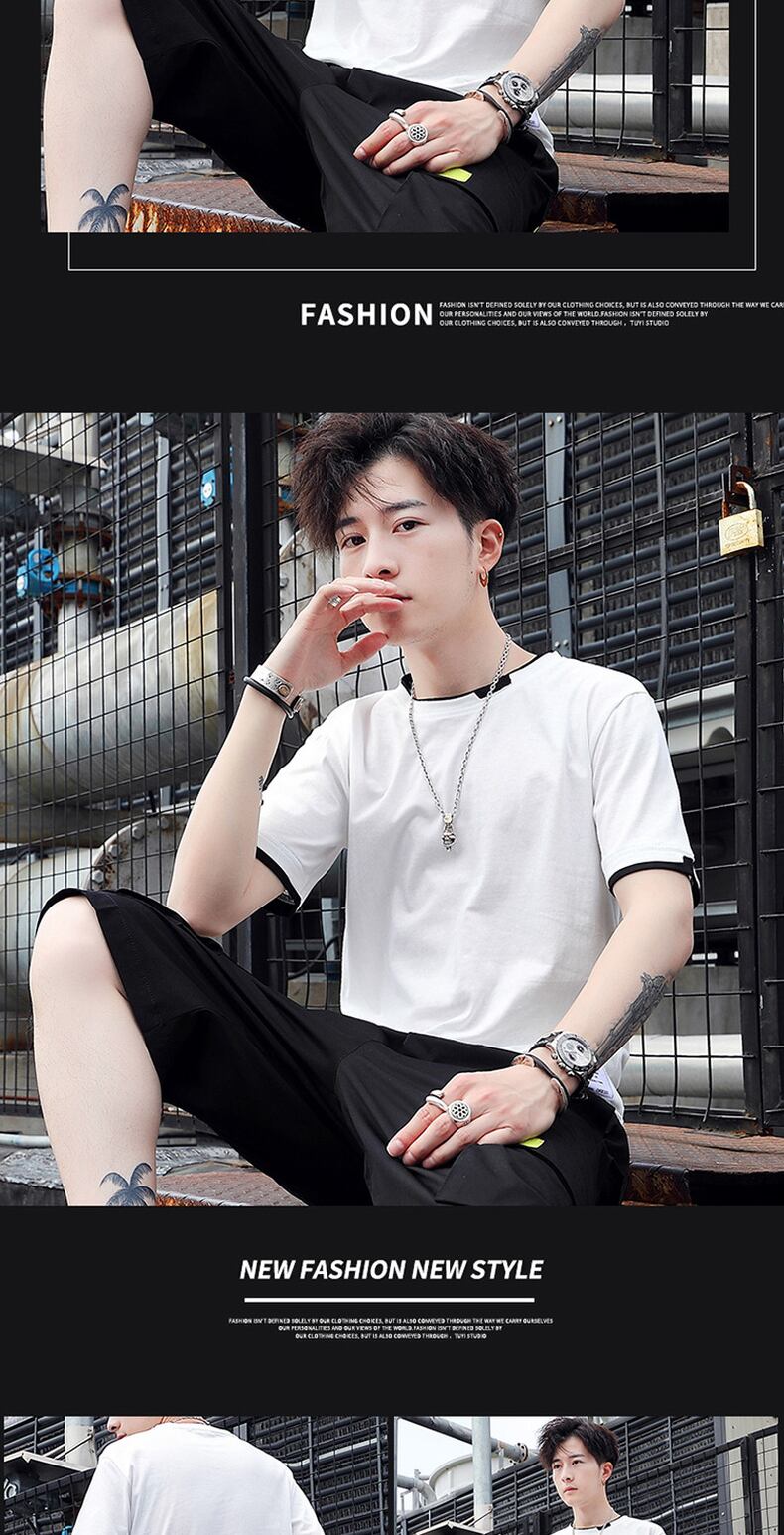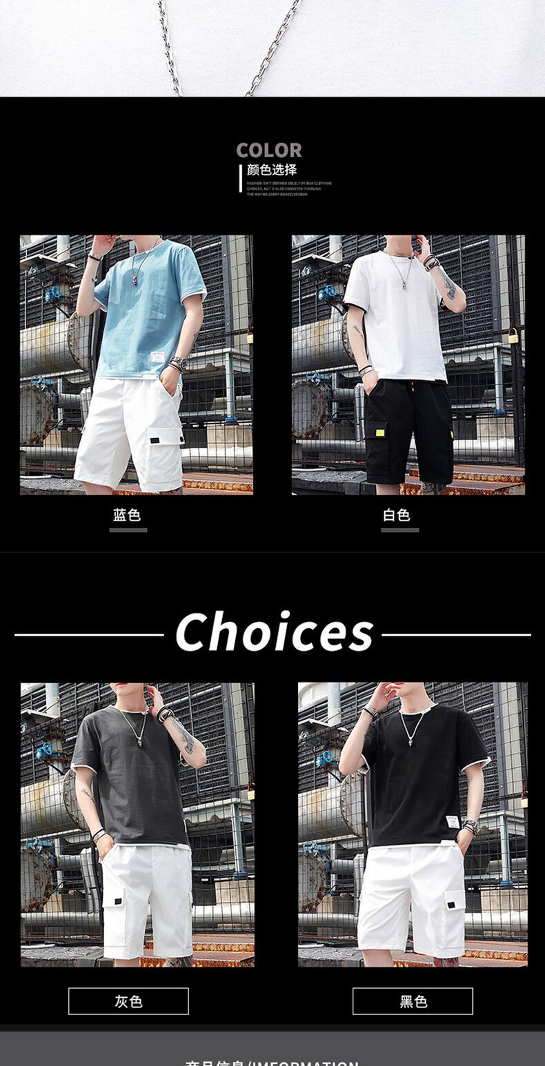 Fake two-piece short-sleeved t-shirt men's summer trend ins blue cotton round neck half-sleeved tide brand breathable sports clothes ブルー コットン サマー 夏物 Oネック Tシャツ doushi34332803704
