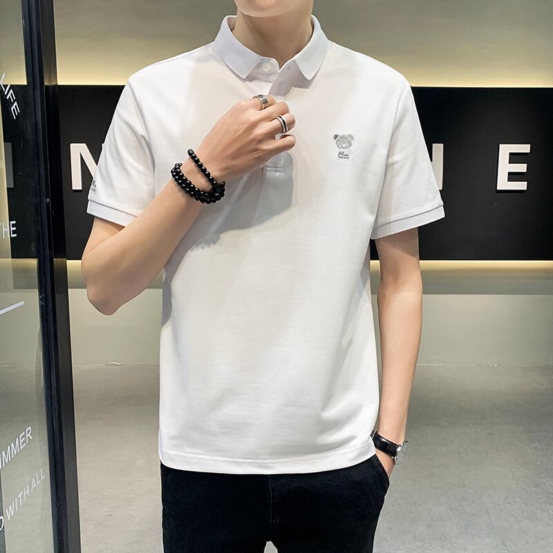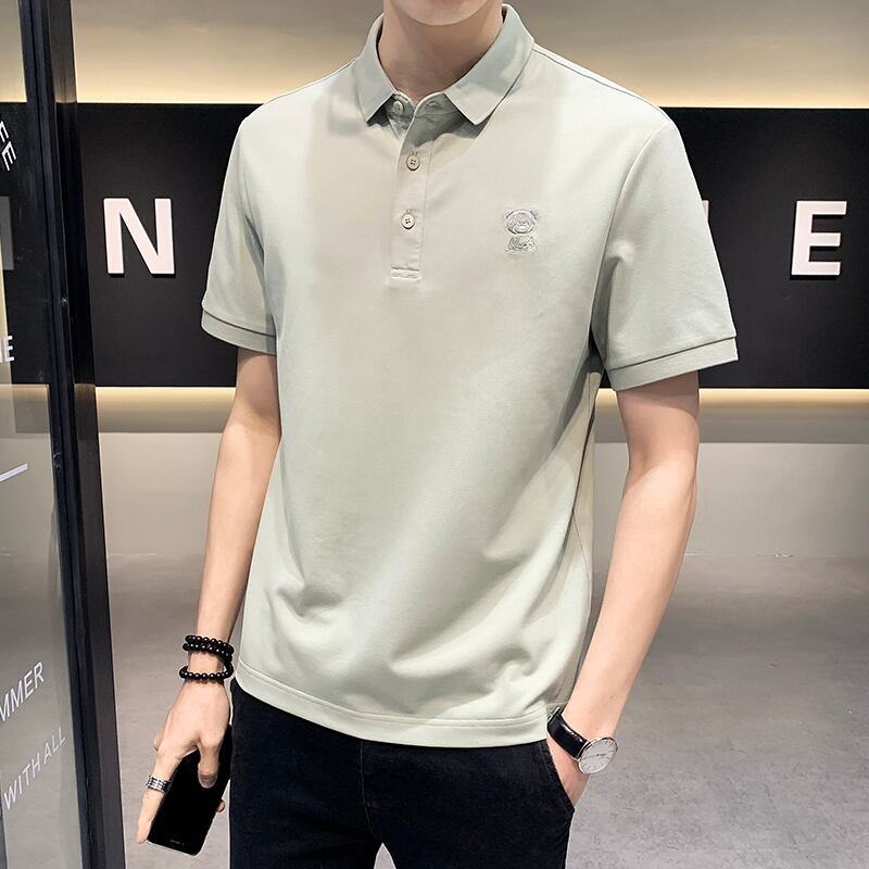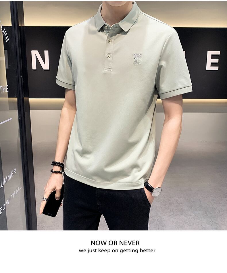 Summer new trend shirt collar shirt men's short-sleeved t-shirt with collar half-sleeve men's t-shirt embroidery polo shirt 刺繍 サマー 夏物 Tシャツ doushi95805353177
