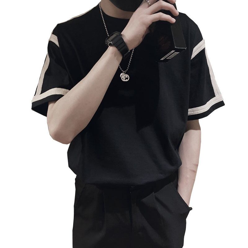 Short-sleeved T-shirt men's trendy fashion brand ins net red ruffian handsome loose white round neck half-sleeved summer men's t-shirt all-match ホワイト レッド サマー 夏物 Oネック Tシャツ doushi40401297888