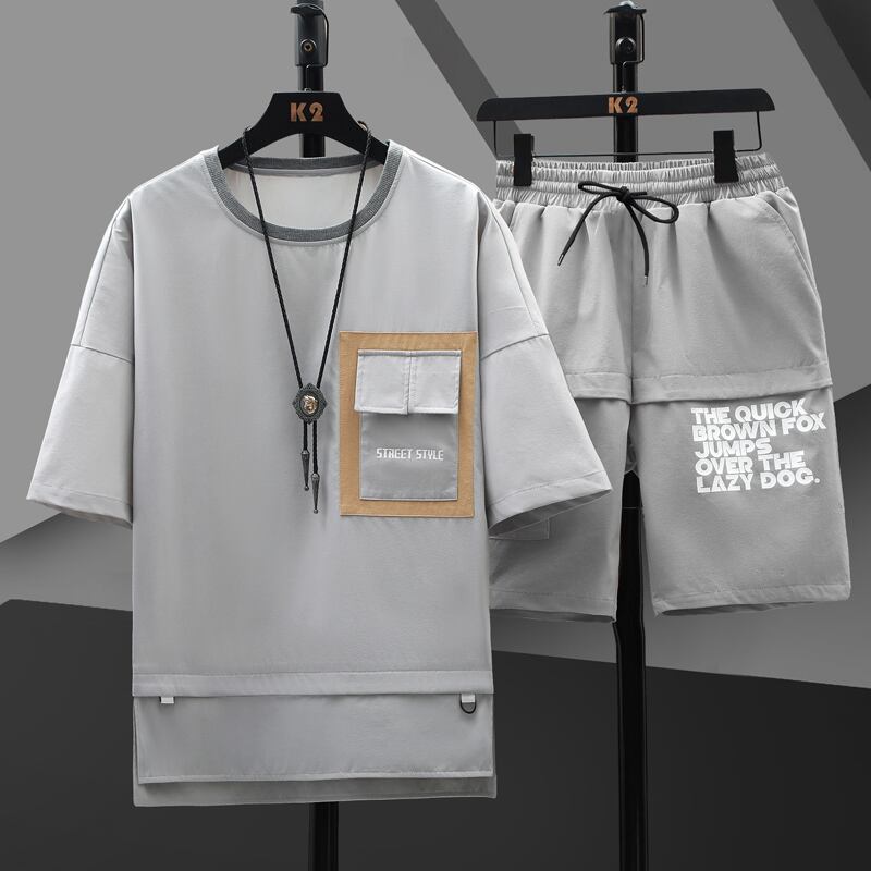 summer leisure sports short-sleeved suit male junior high student boy summer clothes big boy men's trend サマー 夏物 doushi17355151179