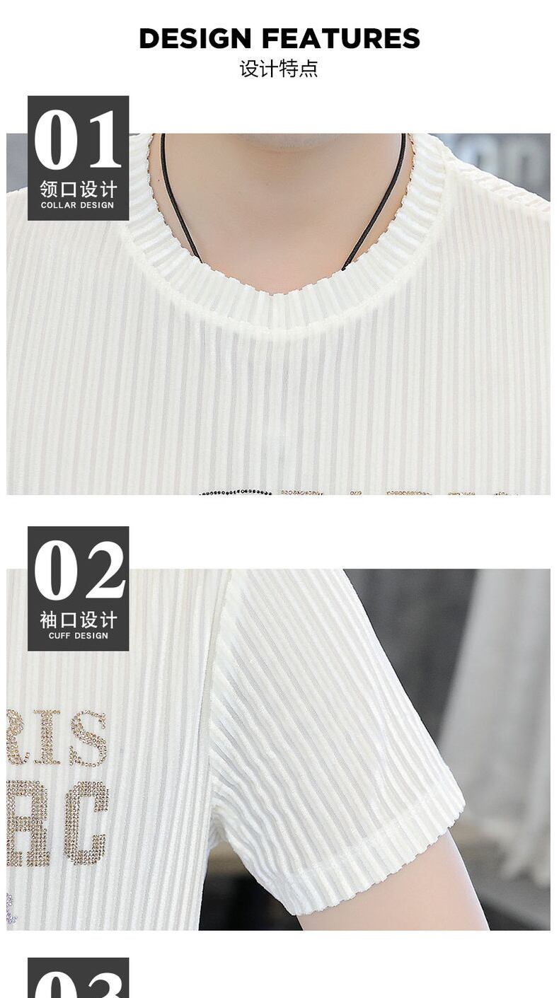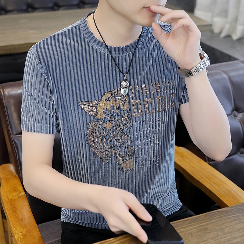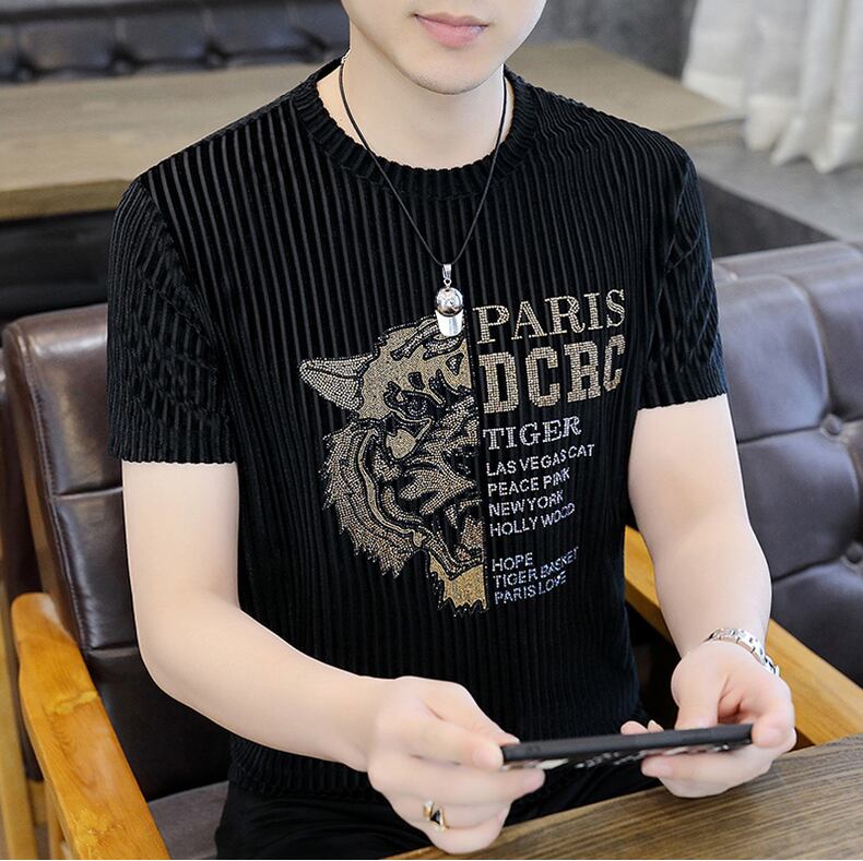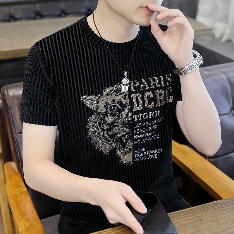 Round neck short-sleeved t-shirt men's tide brand knitted half-sleeve top summer men's high-end drilling embroidery bottoming T-shirt 刺繍 サマー 夏物 Oネック Tシャツ doushi21370768400