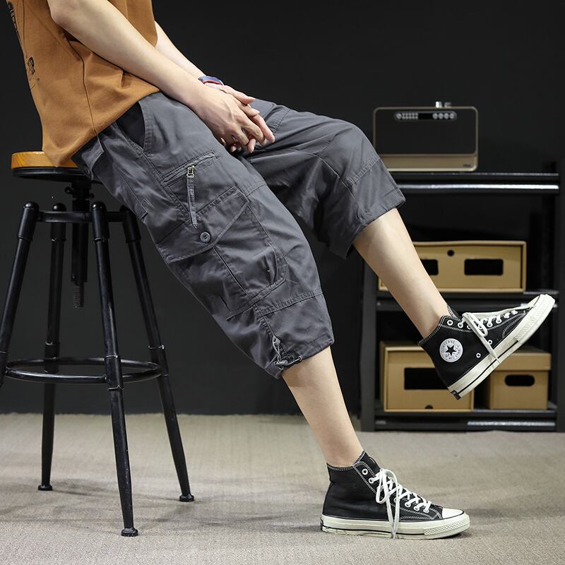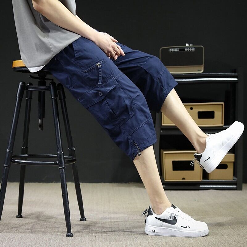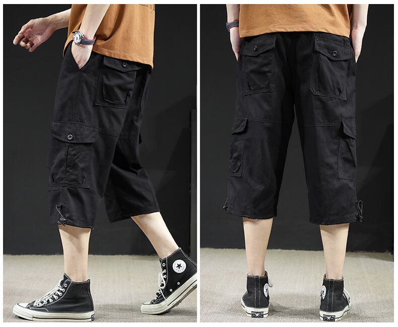 Summer thin cropped pants men's workwear elastic waist loose sports shorts large size casual fat fat man breeches カジュアル エラスティック 伸縮 大きめサイズ サマー 夏物 ショーツ ブルマー doushi24457964857