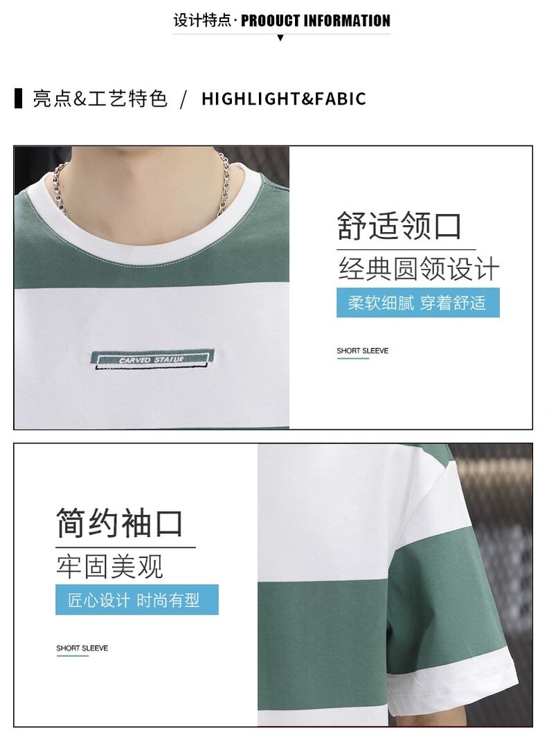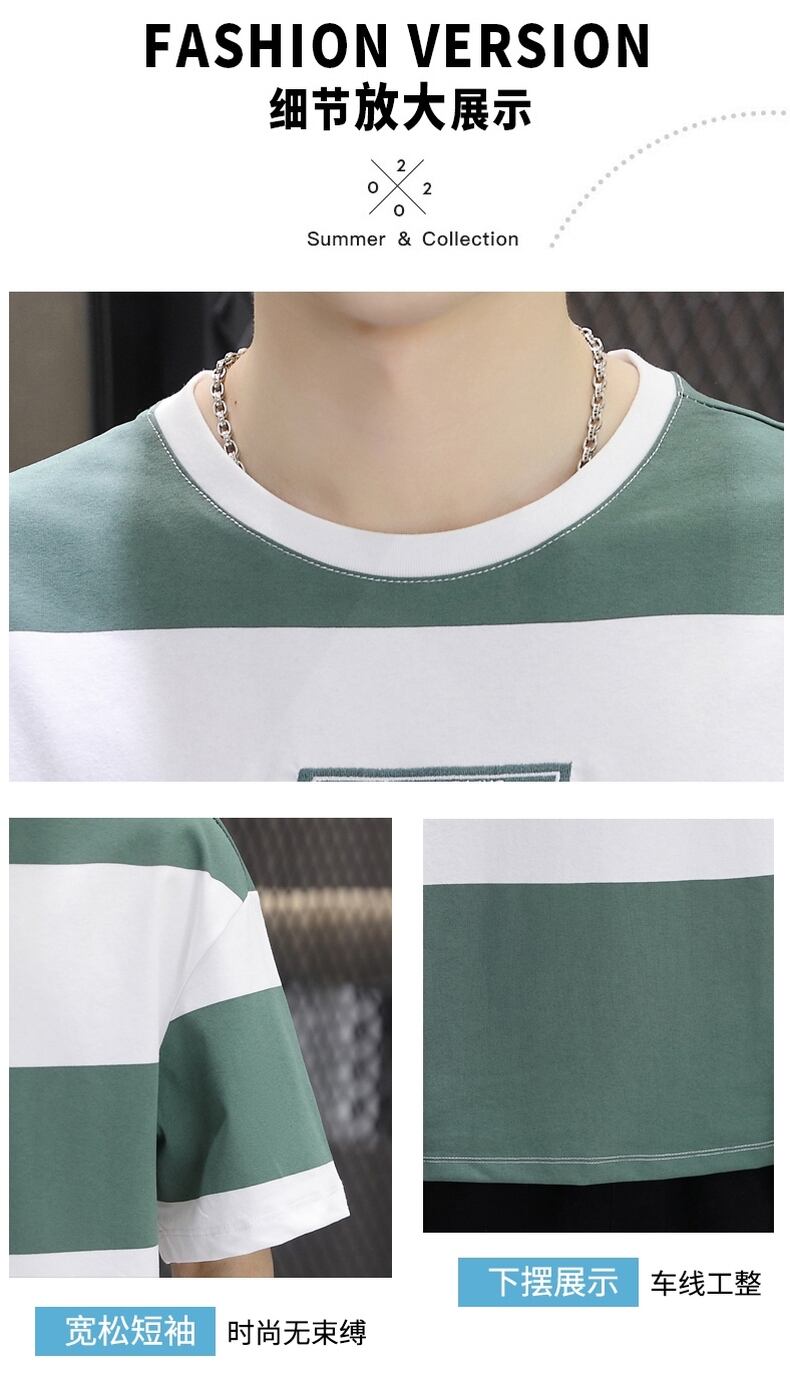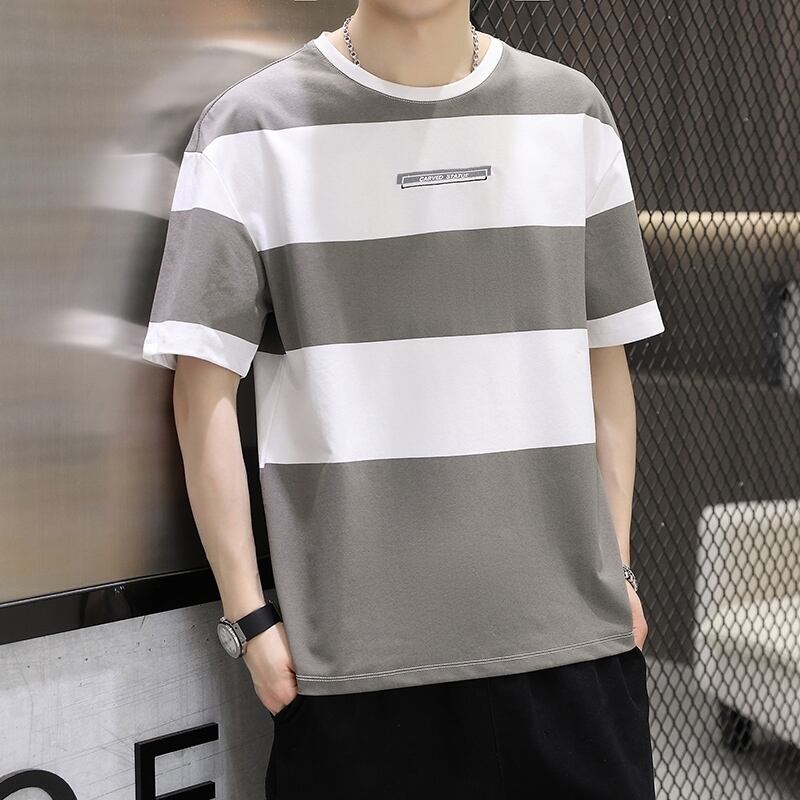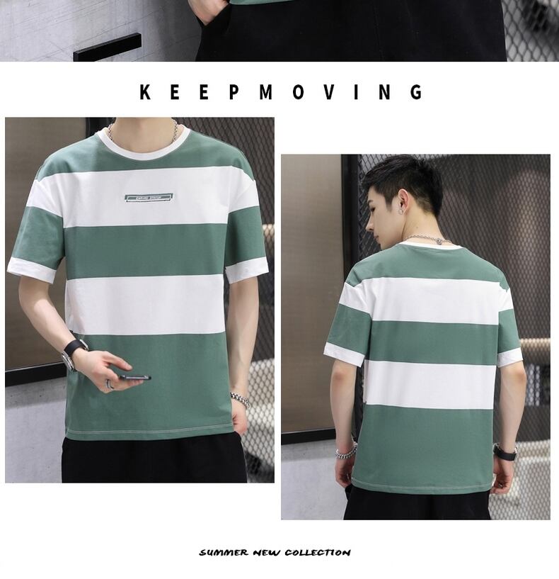 junior high students pure cotton short-sleeved t-shirt summer boy teenager fat big boy men's striped clothes handsome コットン サマー 夏物 ストライプ Tシャツ ピュア doushi21333454739