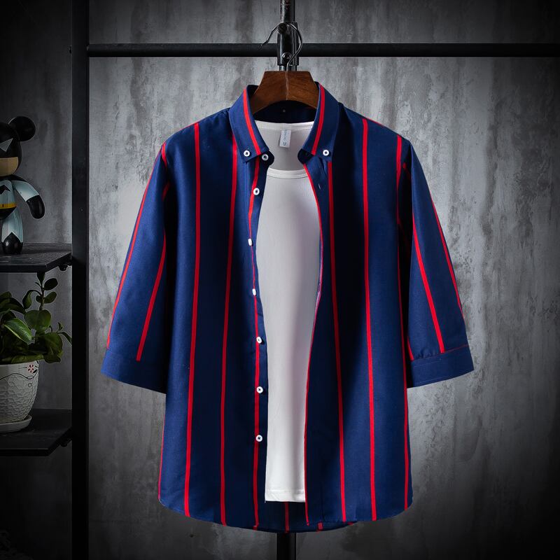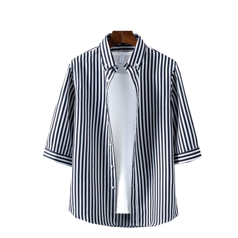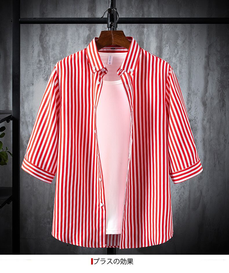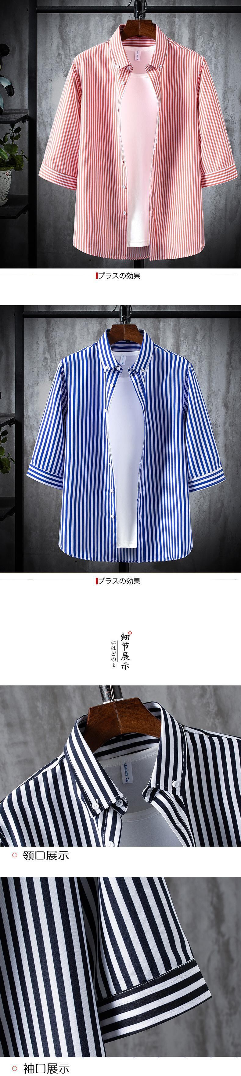 Striped short-sleeved shirt men's youth shirt version of the trend handsome summer 7 three-quarter sleeves thin section half sleeve inch 半袖 ハーフスリーブ サマー 夏物 ストライプ doushi7190807429