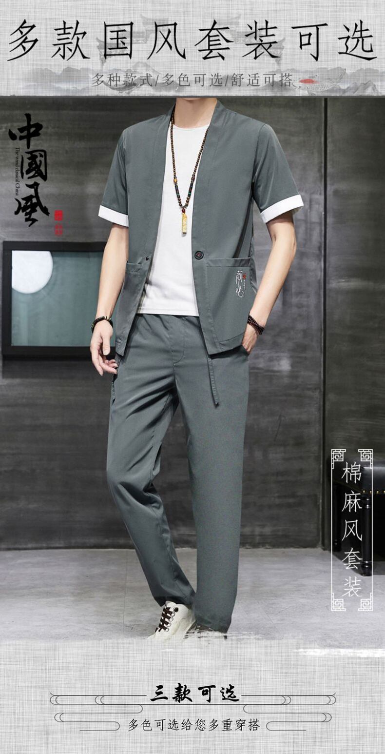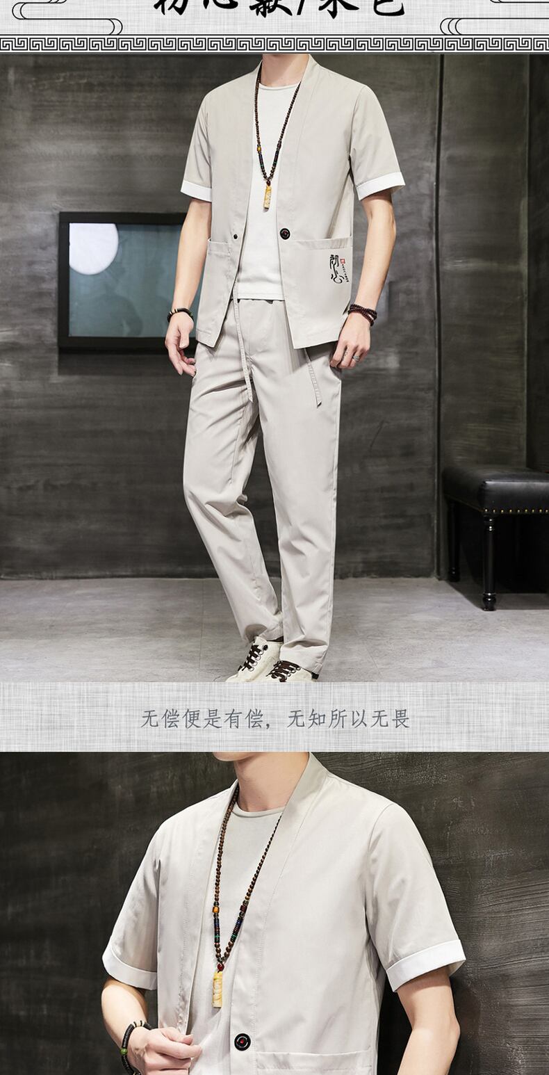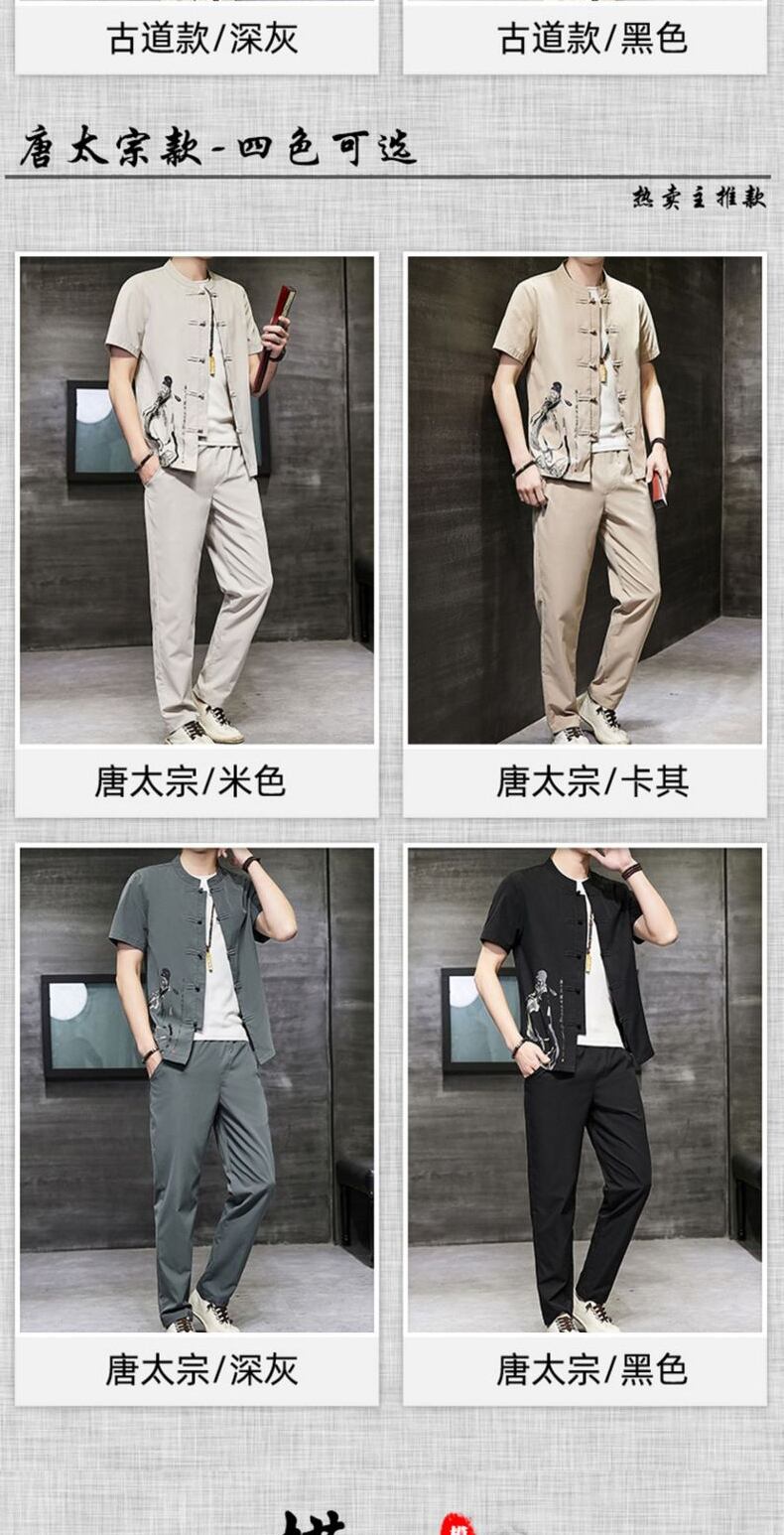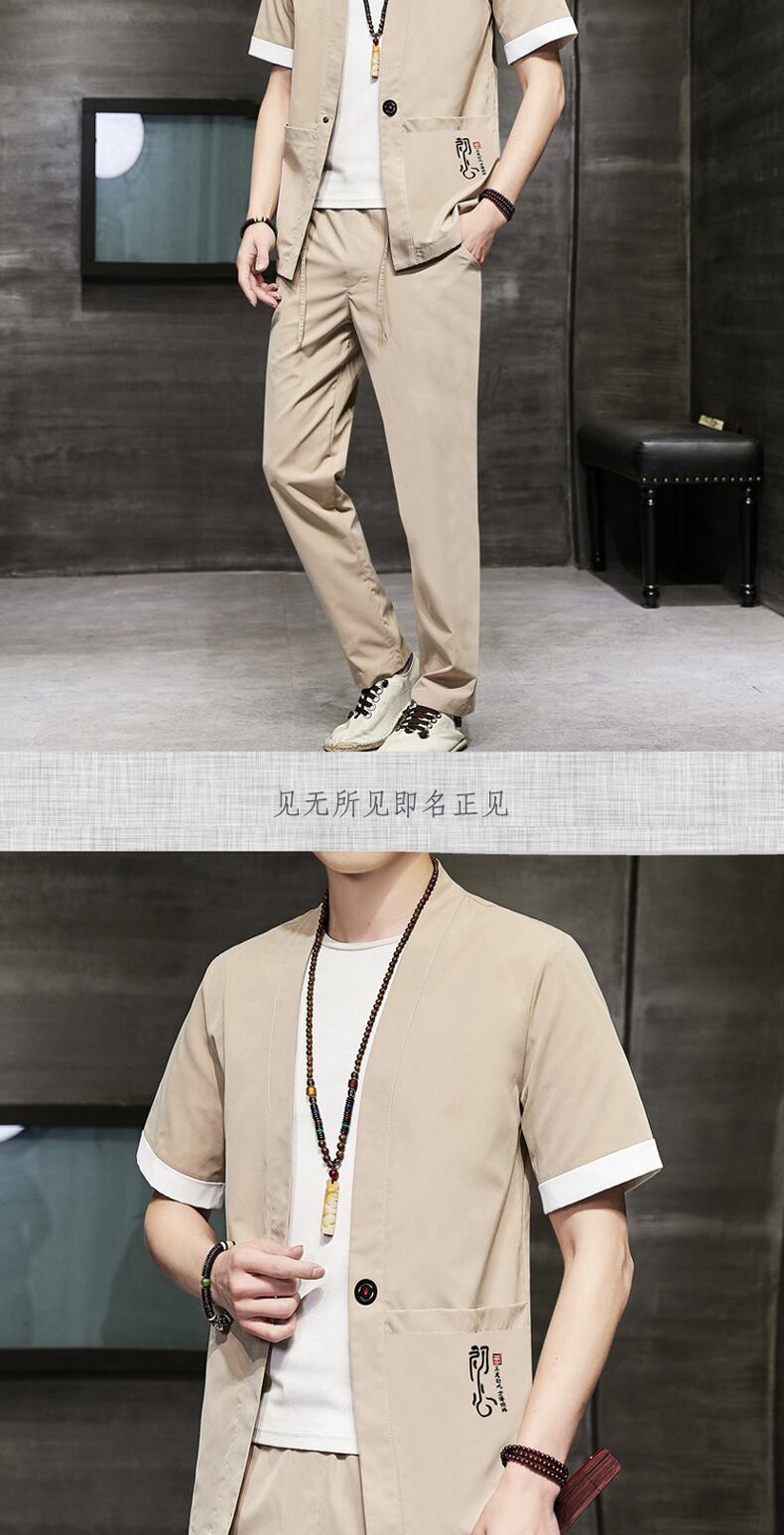 Chinese style men's Buddhist retro short-sleeved t-shirt v summer tide brand thin suit men's summer casual Tang suit Hanfu レトロ カジュアル サマー 夏物 Tシャツ doushi28535899101