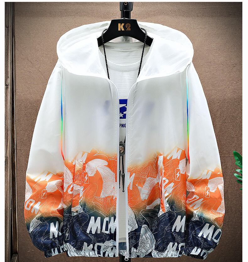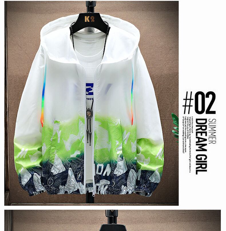 2022 new ice silk jacket men loose hooded summer thin sunscreen clothes trendy gradient casual jacket カジュアル サマー 夏物 シルク doushi79692914693