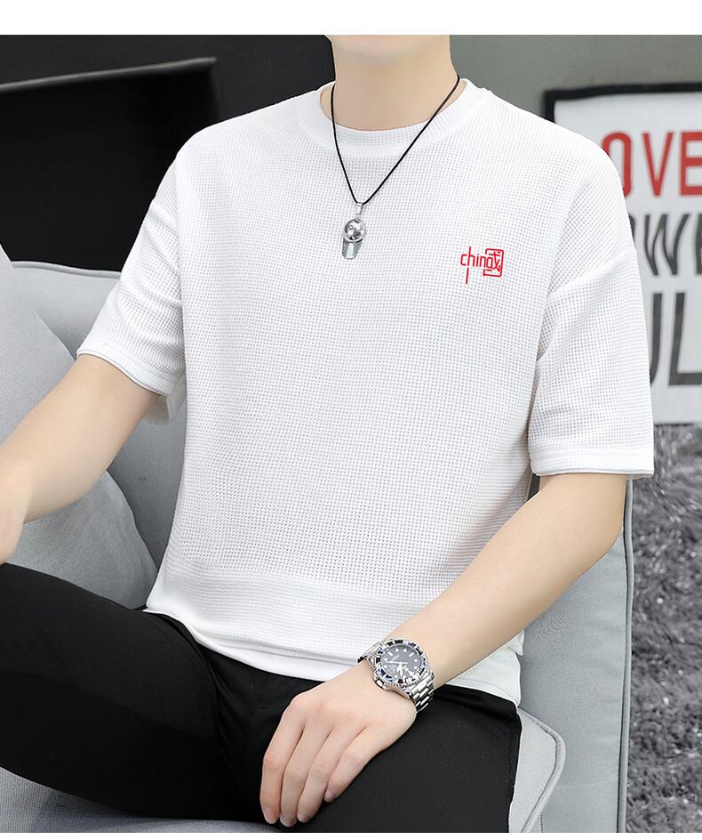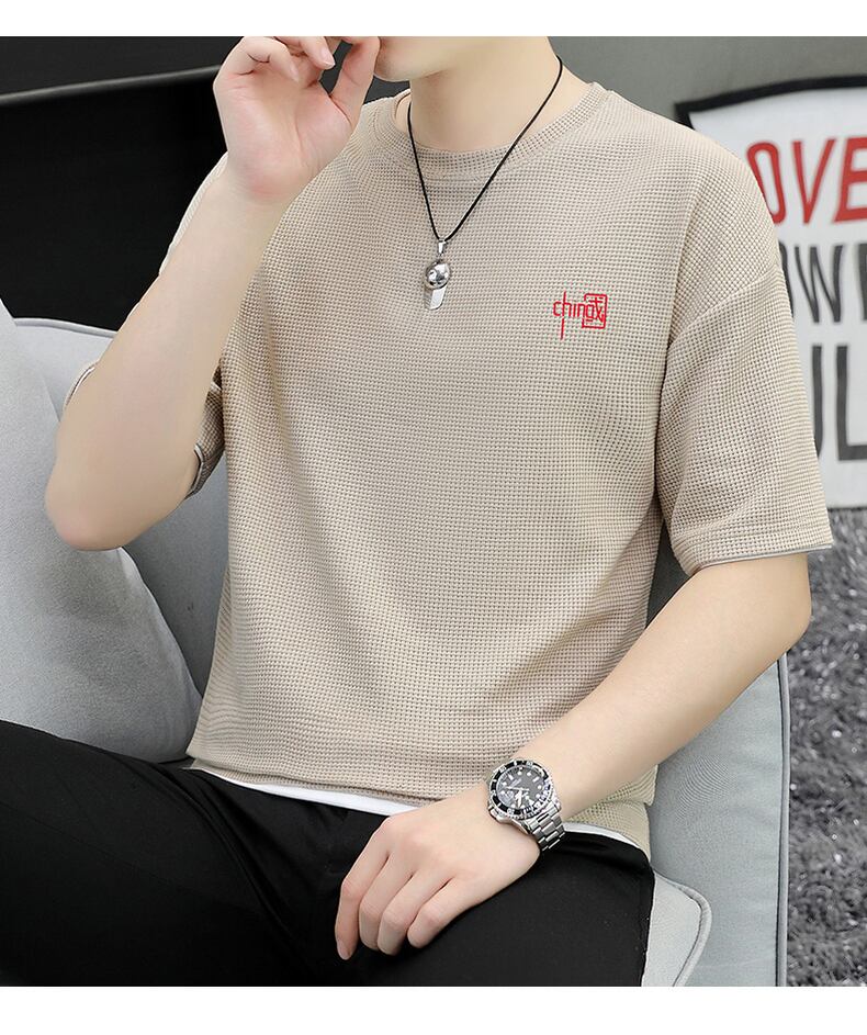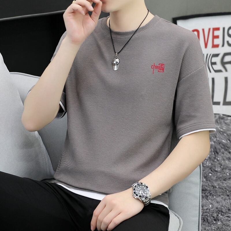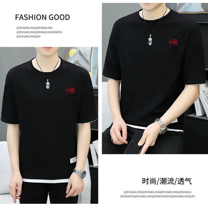 2022 summer short-sleeved T-shirt trend waffle clothes Chinese style handsome tide brand fake two-piece t-shirt men's clothing サマー 夏物 Tシャツ doushi86997056245
