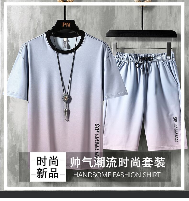 Ice silk shorts suit men's summer version of the trend of casual pants gradient color five-point pants tide brand outer wear big pants カジュアル サマー 夏物 ショーツ ブルマー シルク doushi10672992767