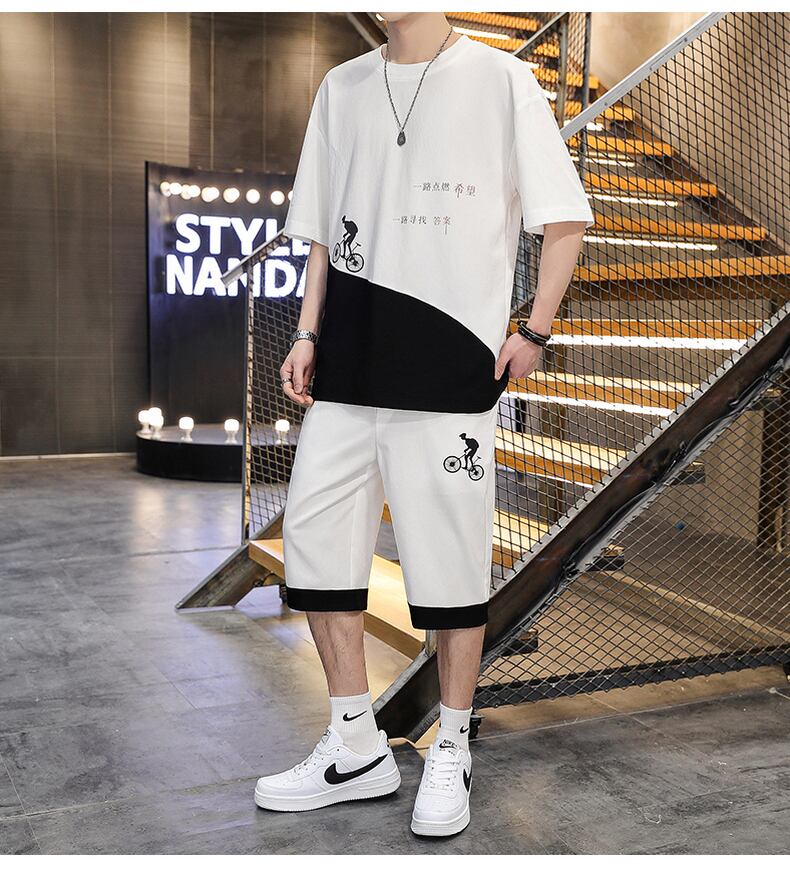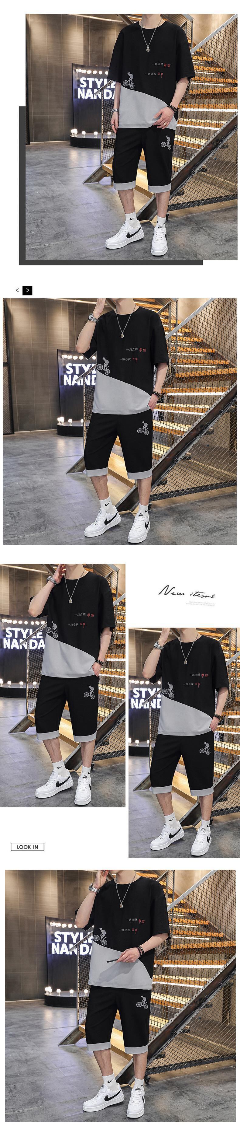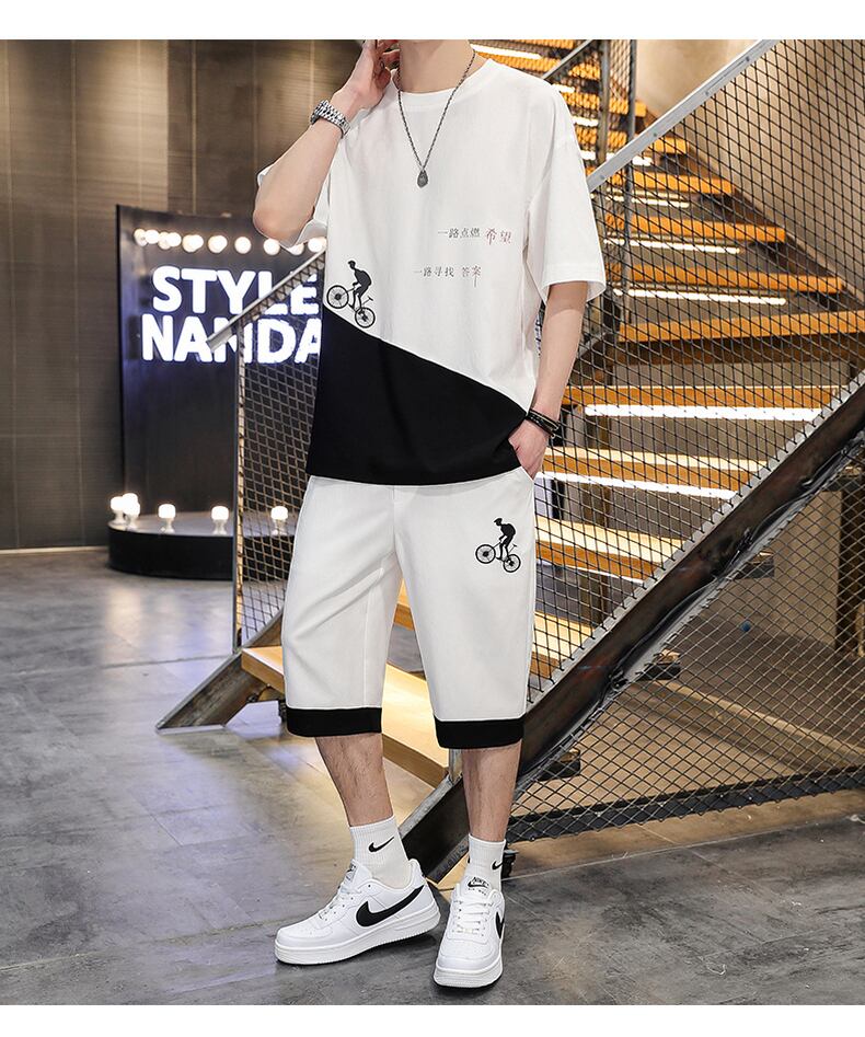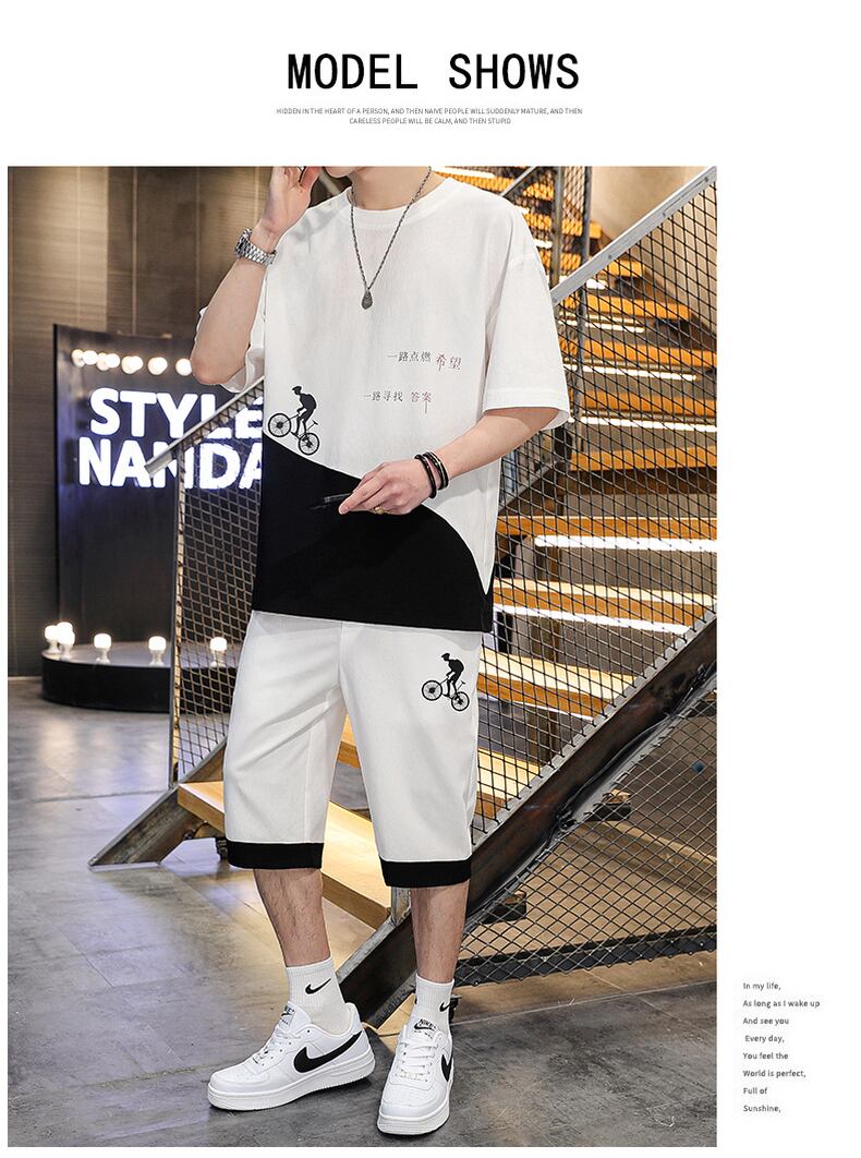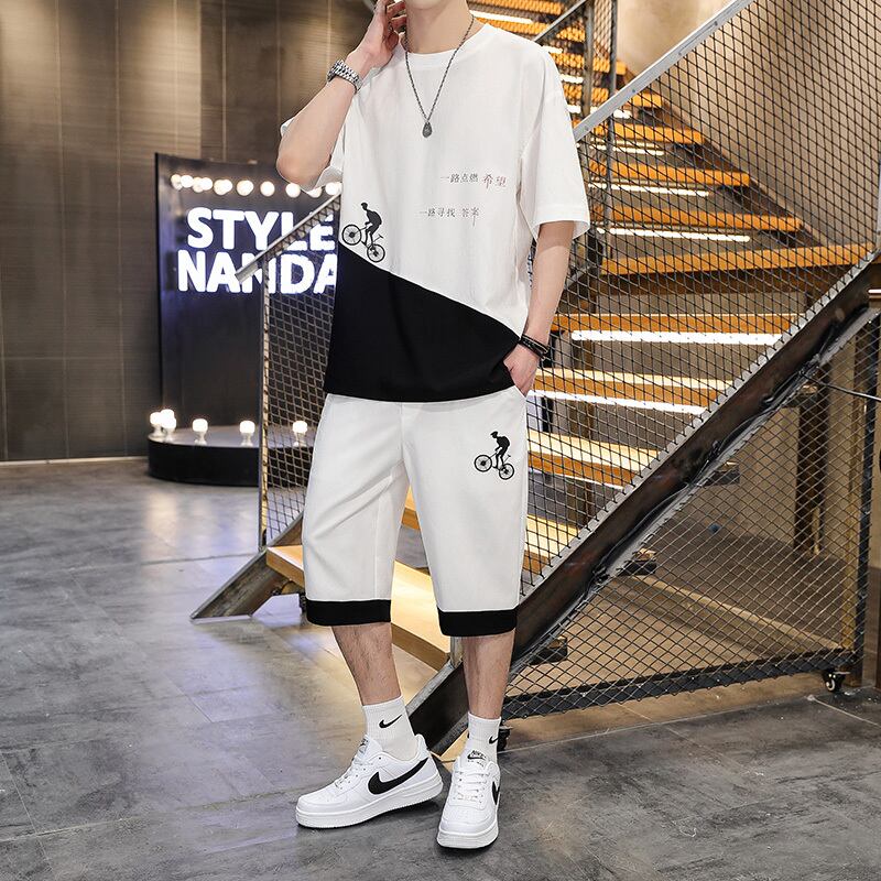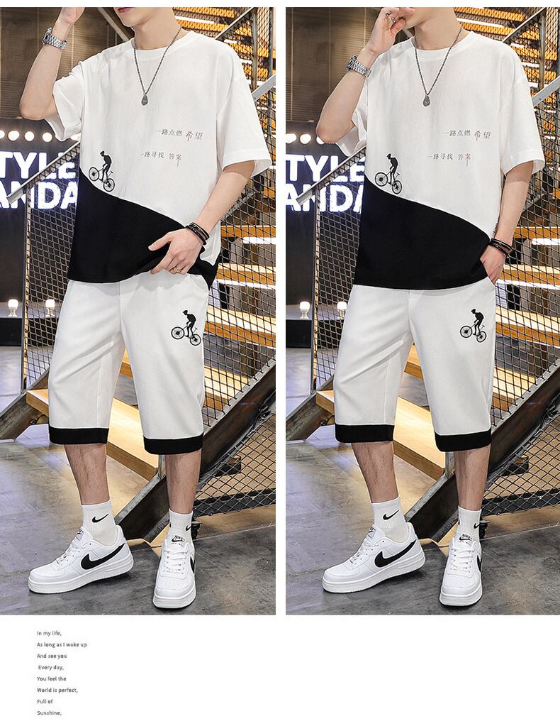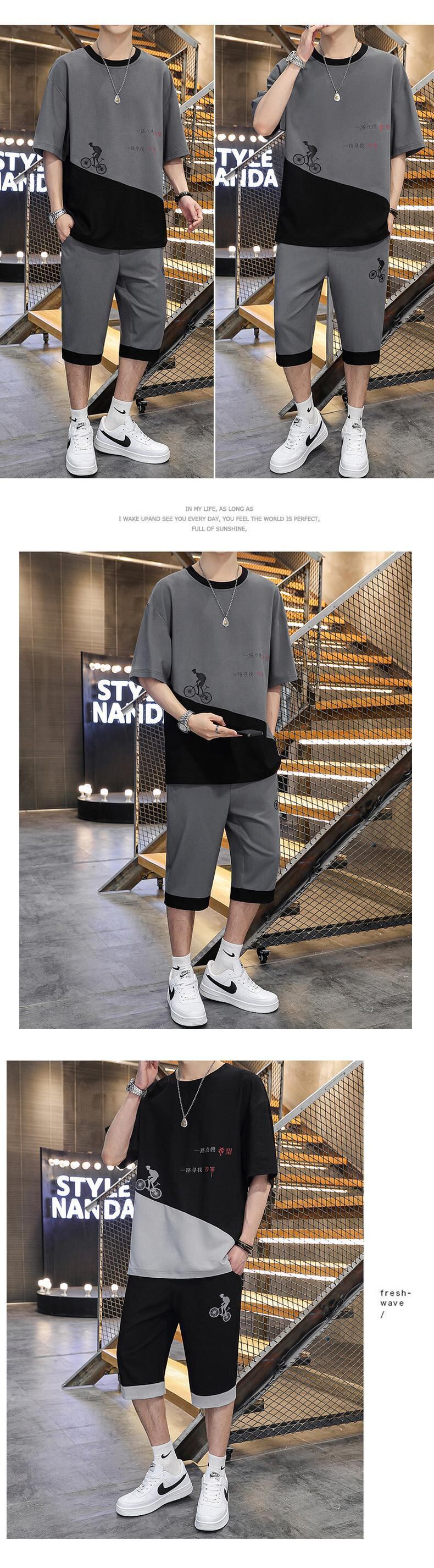 Men's suit summer trend casual ice silk short-sleeved t-shirt handsome youth sportswear men's matching set カジュアル サマー 夏物 シルク Tシャツ doushi13663525618