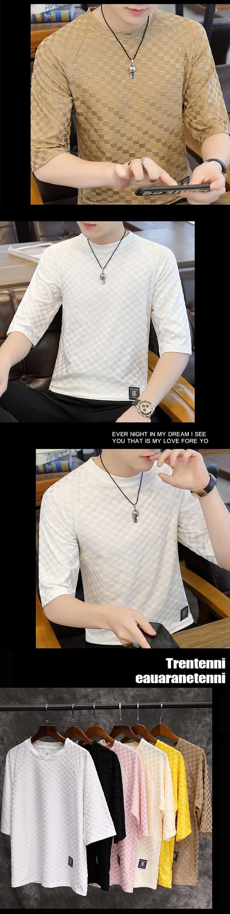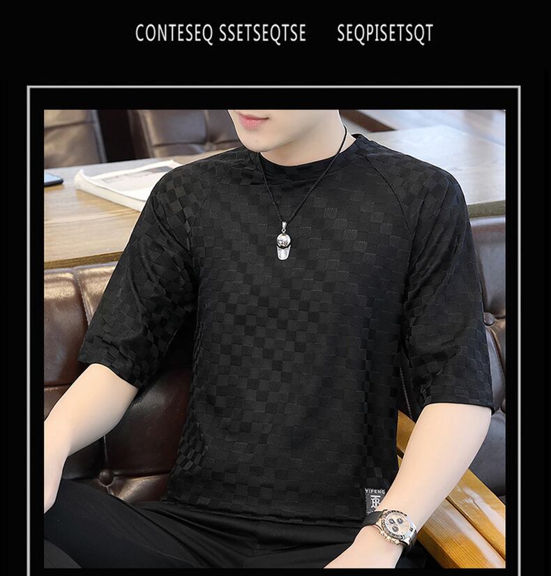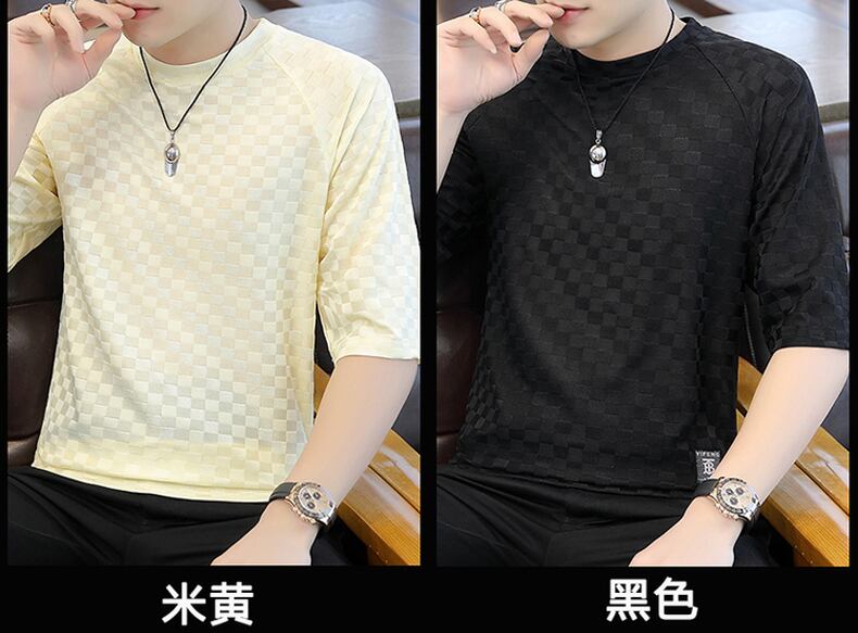 Seven-point sleeve men's ice silk personality tide brand short-sleeved t-shirt 2022 summer new five-point sleeve men's 7-point 5-point mid-sleeve サマー 夏物 シルク Tシャツ doushi8306434950