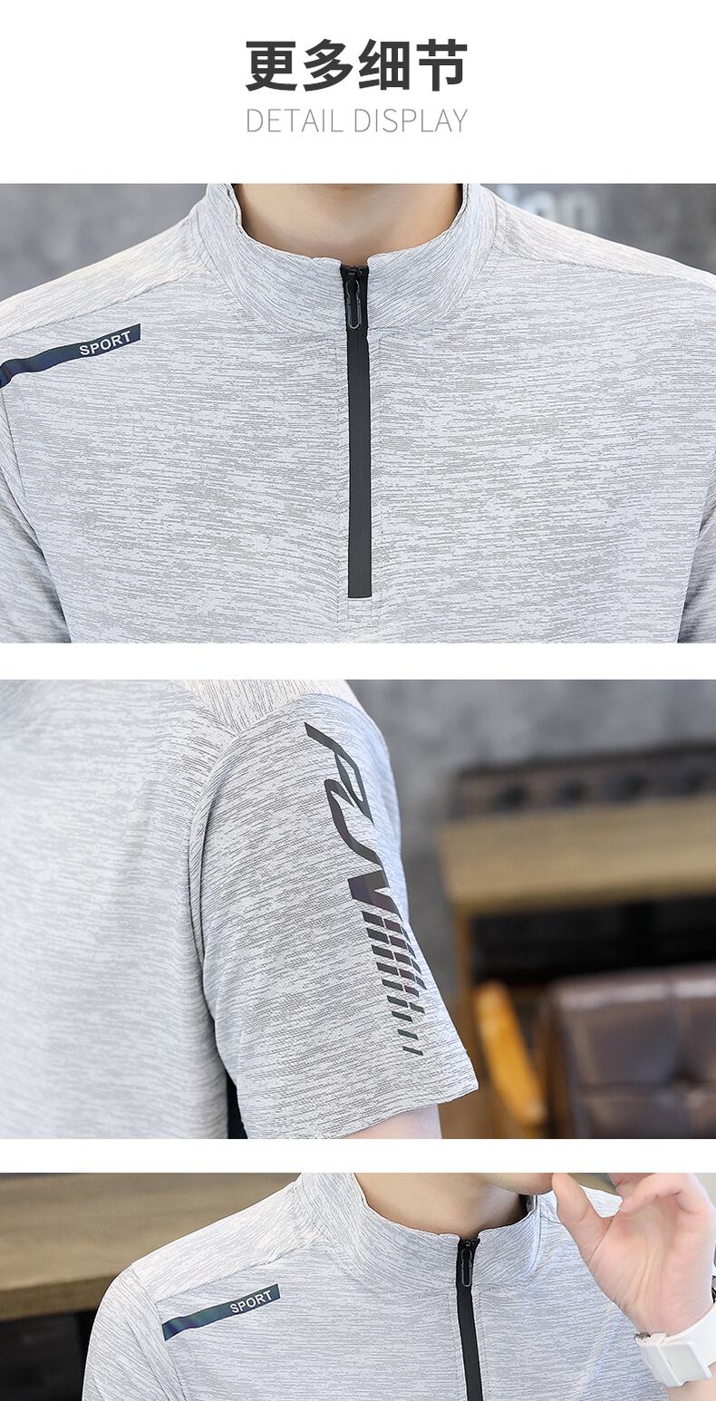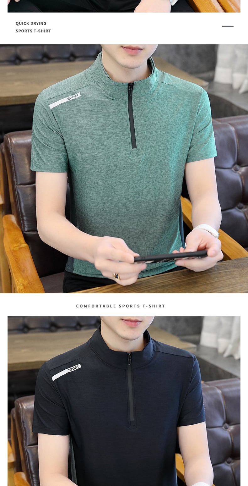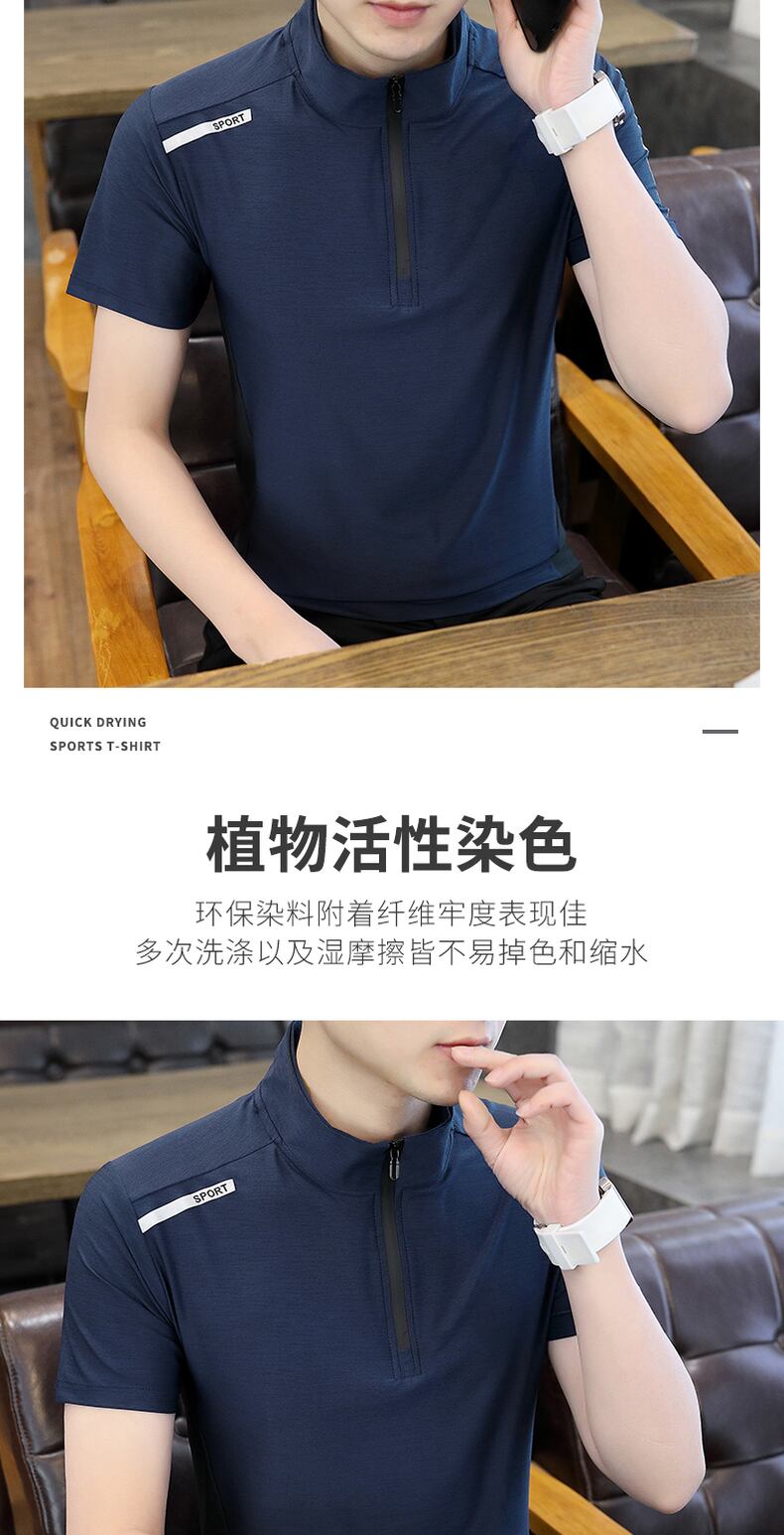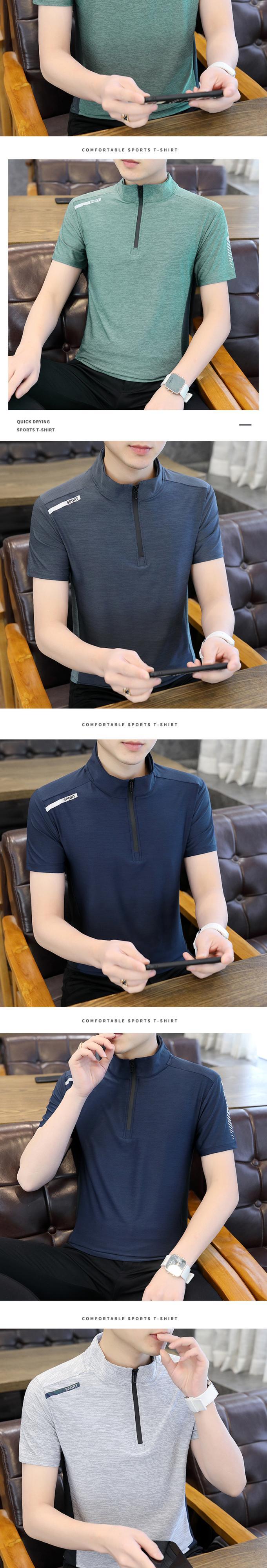 Tide brand half high-neck ice silk t-shirt men's short-sleeved trend all-match self-cultivation mid-neck zipper top summer stand-up collar t-shirt サマー 夏物 シルク Tシャツ doushi55607470339