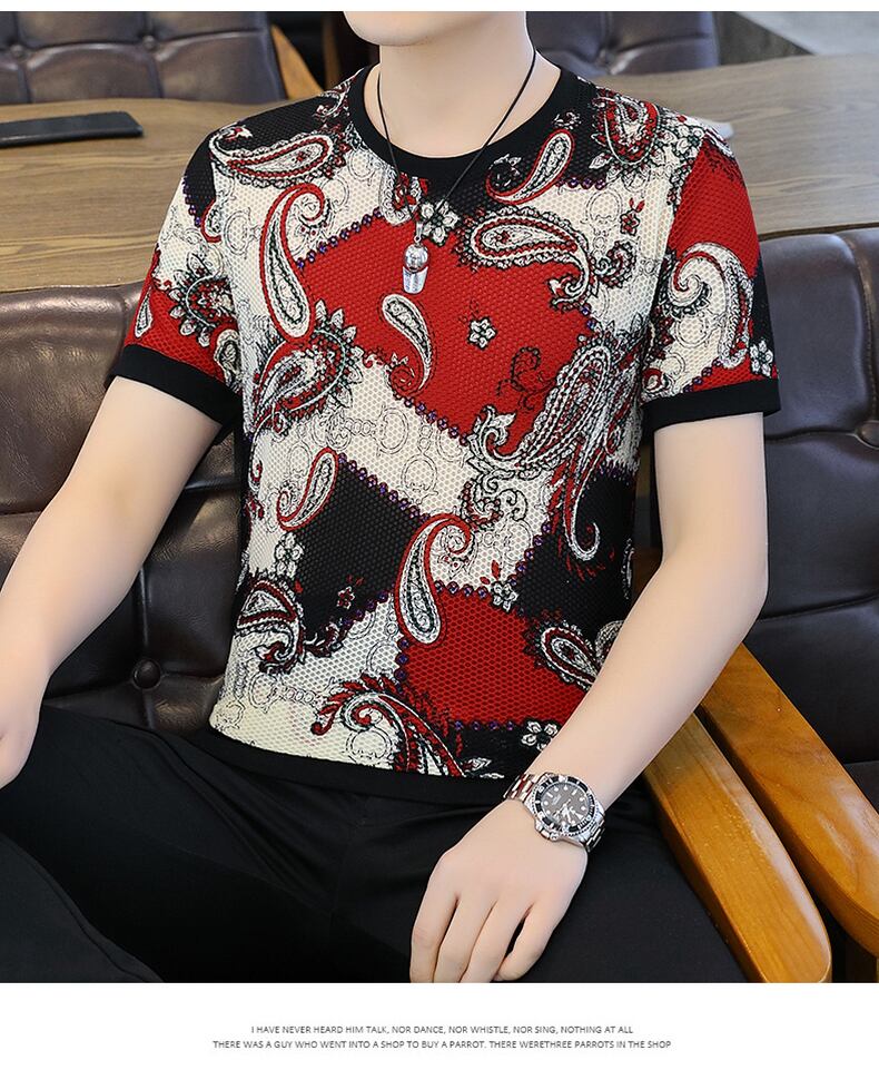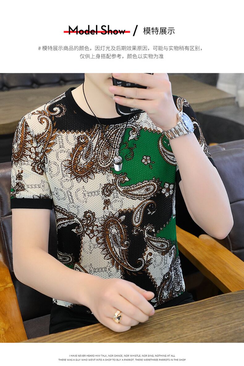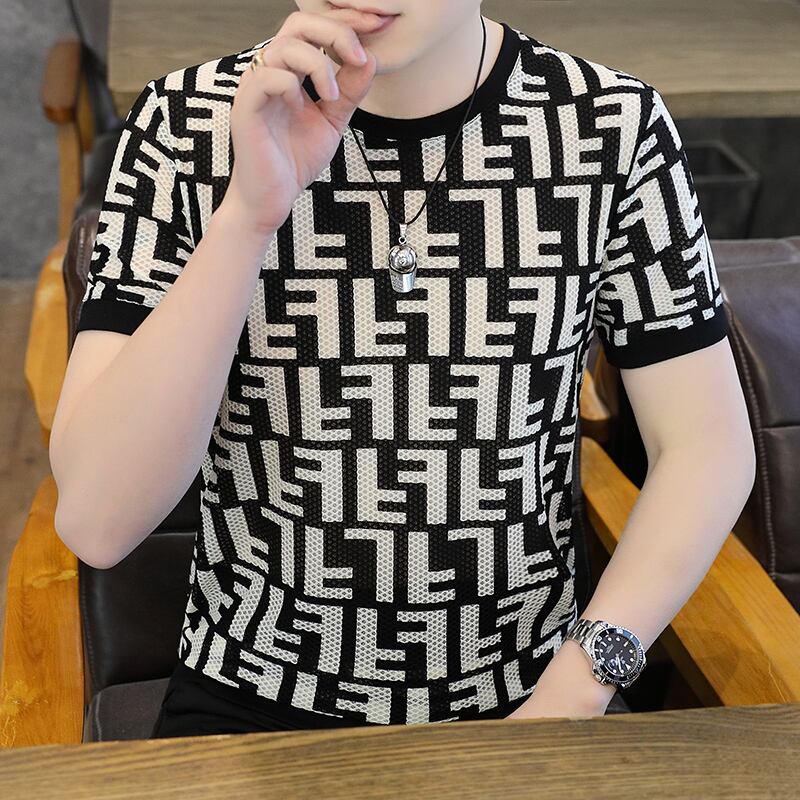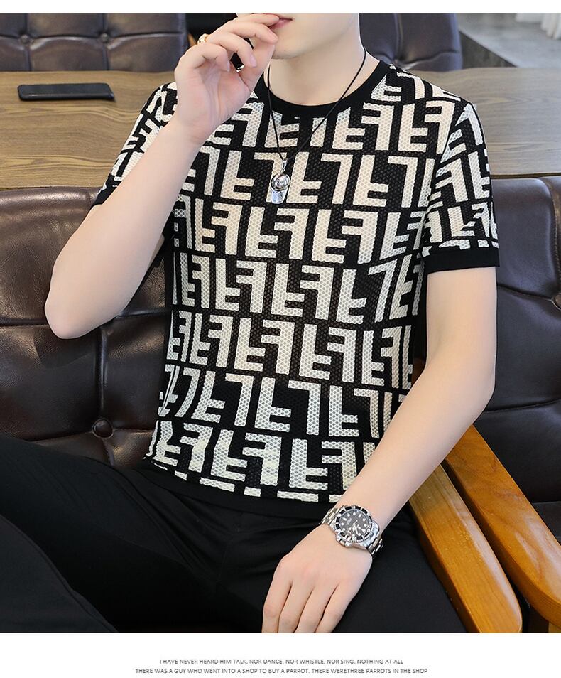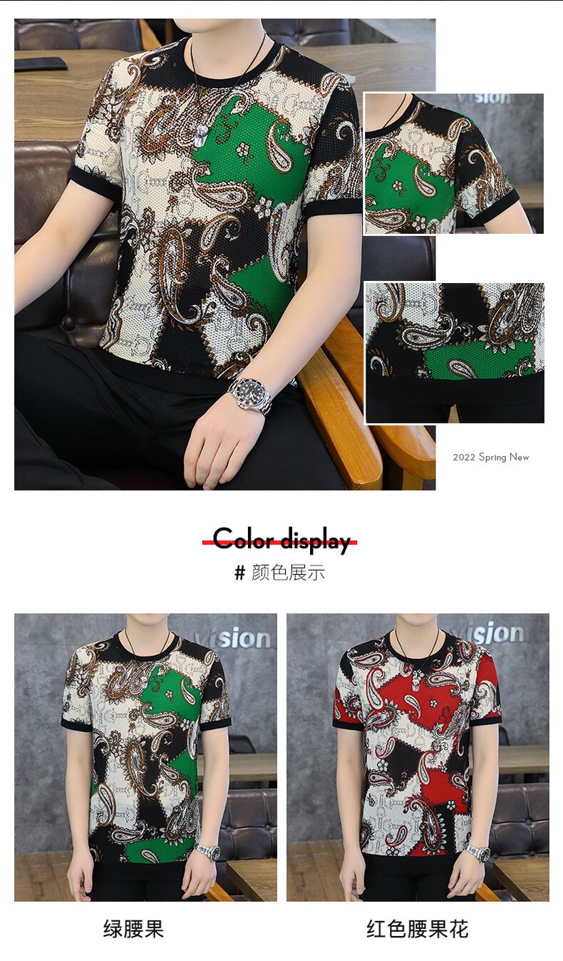 Short-sleeved t-shirt men's ice silk summer 2022 new shirt European version slim ins tide brand t-shirt men's half-sleeved trend サマー 夏物 スリム シルク Tシャツ ヨーロピアン doushi11046064205